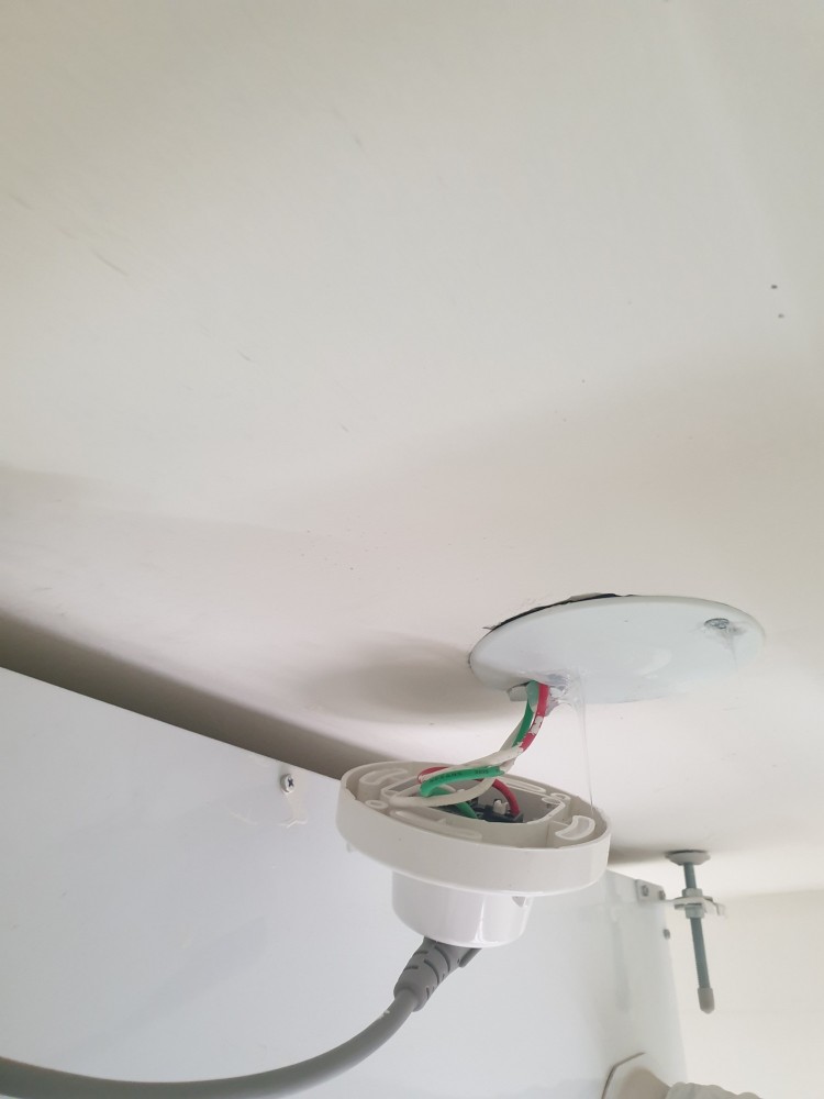 2. 지금의 원형보다 조금 더 크게 원형의 목재판 (합판 등등)을 천장에 고정