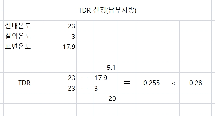 그리하여 고민중 설계당시 TDR 수치에 의한 단열성능기준에 의하여 시공상 하자가 있는지 여부를 가려