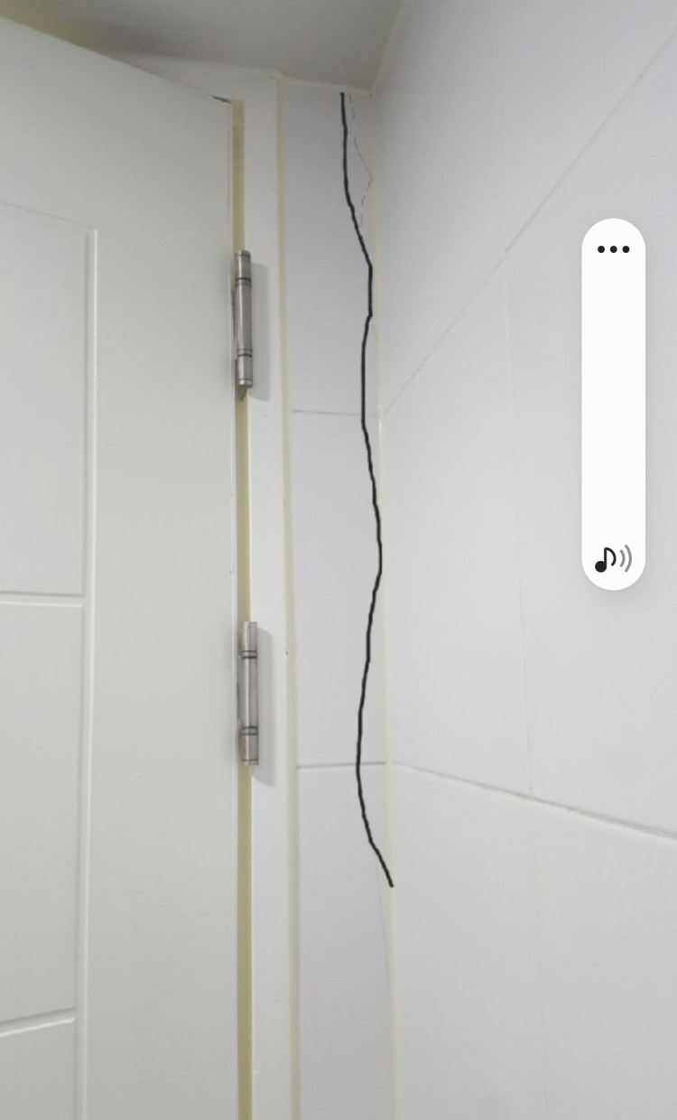 또는 더운 물을 이용해서 타일 벽면 청소를 했거나 했다면, 타일이 더 버티지 못하고 균열이 갔을 것 같습니다.