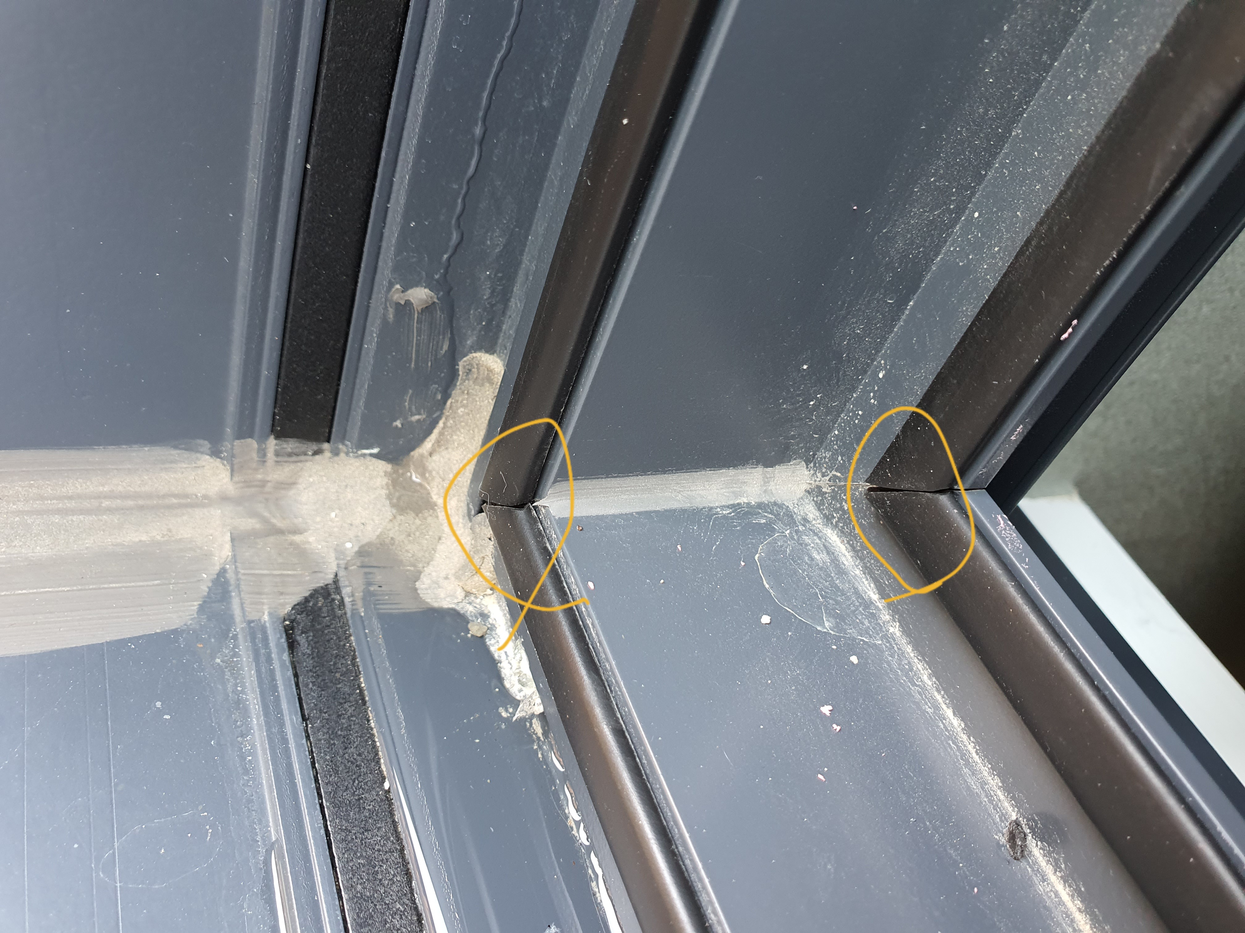 실리콘 작업이 누락되어 기밀 / 수밀 성능이 떨어집니다. 번거롭지만 문짝 프레임과