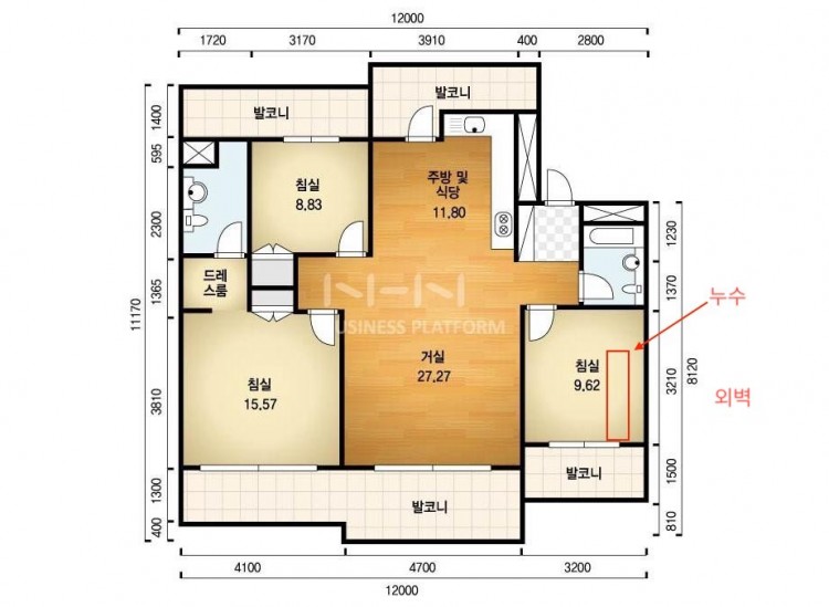 다만 이 것이 윗집의 결로인지, 아니면 바닥배관의 누수인지는 알기 어렵습니다.