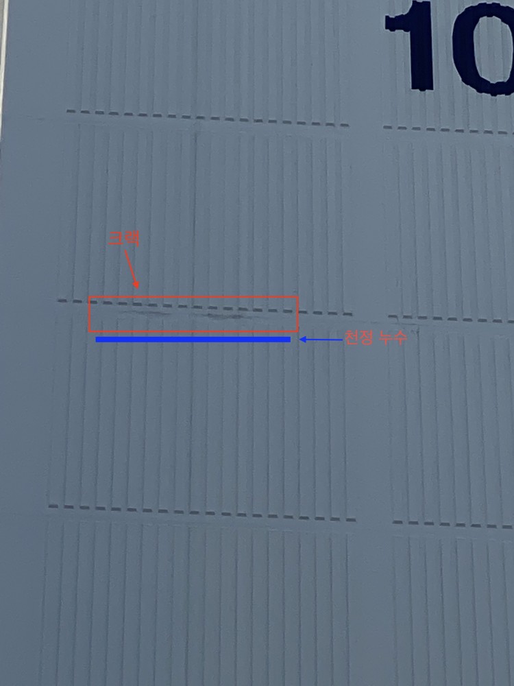 4. 외벽을 살펴보니 천정부분에 크랙이 있어서 금년도 3월에 외벽 크랙 보수는 하였습니다. (관리실 원인 추정)