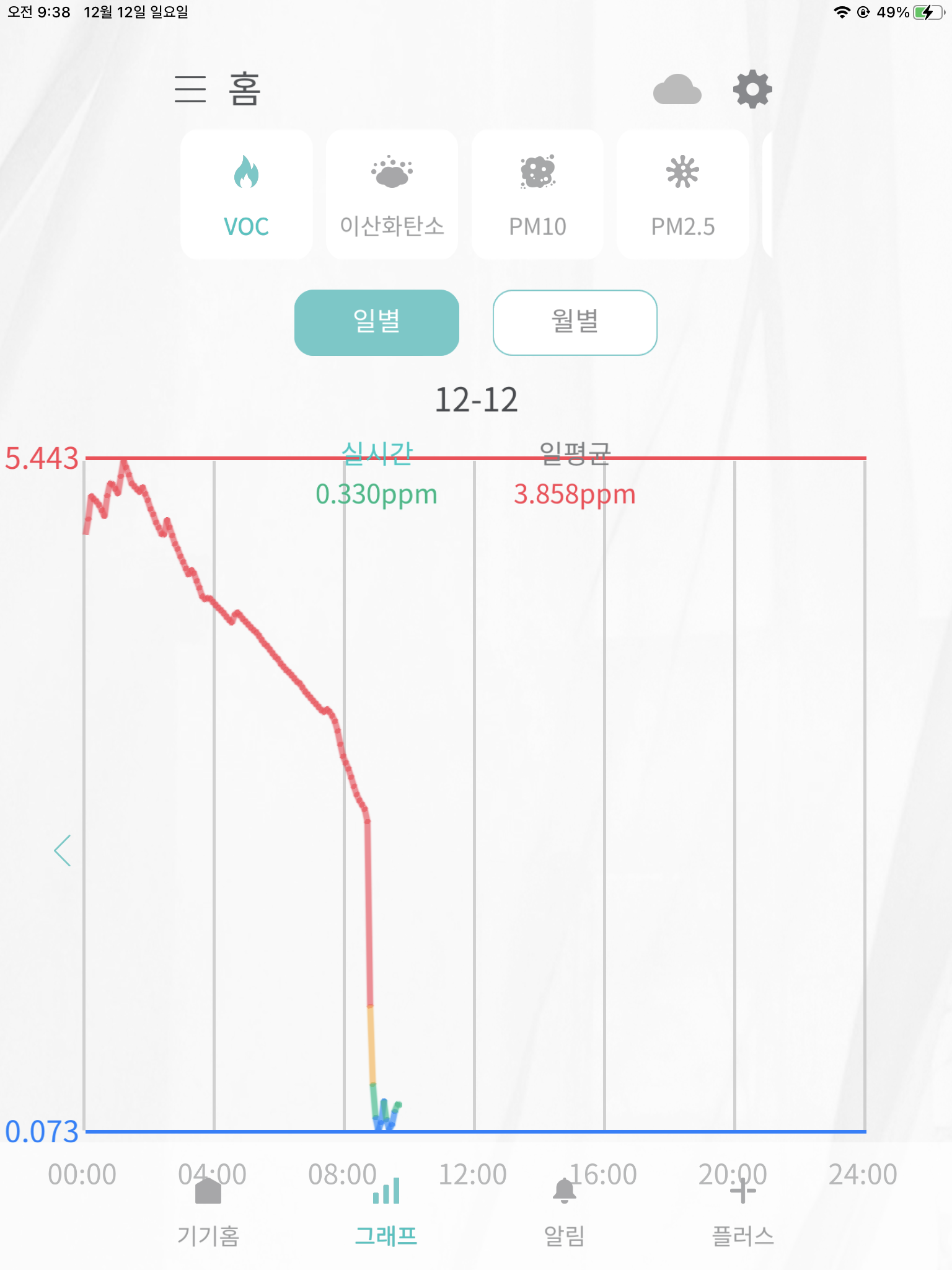 심지어 부탄가스 틀고 문닫고 거실에 있다가 봤더니 voc수치만 내려가고 이산화탄소 농도는 비슷하네요