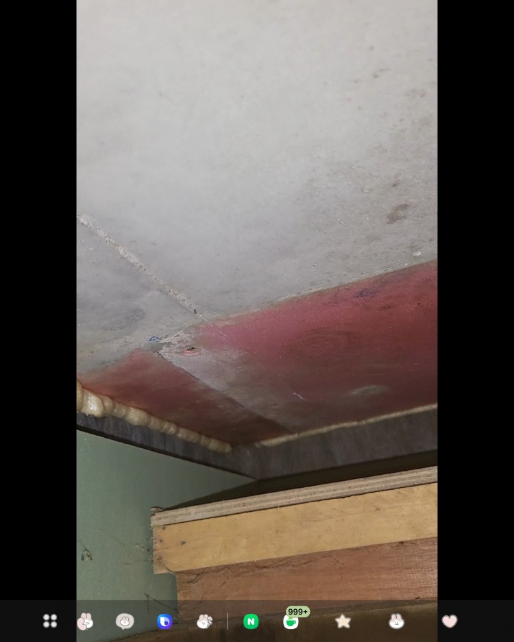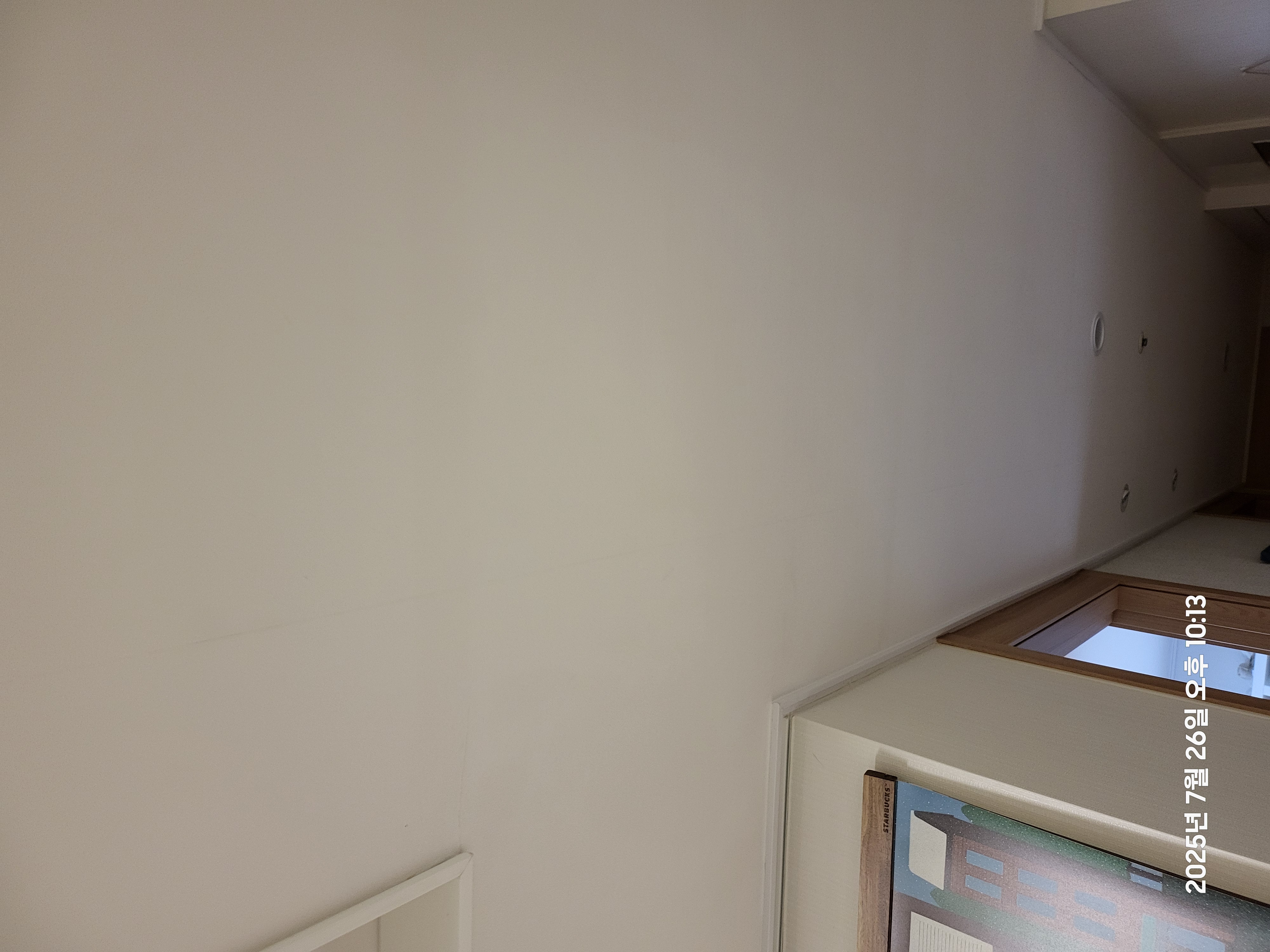 문제는 5월 달에 외벽공사를 했는데 그 후부터 문제 없다고 보험사에서 처리 안 한 복도에 줄이 생기기 시작하면서 부풀기 시작했습니다 갑자기 안방도 썩는냄새가 진동합니다