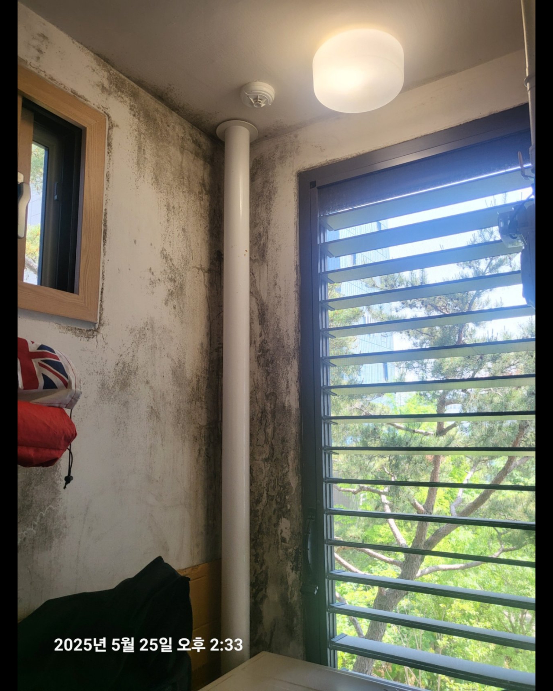 외벽 우수관 확인 요청 했는데 해주지 않습니다 결로 때문에 곰팡이가 생겼다고  ..