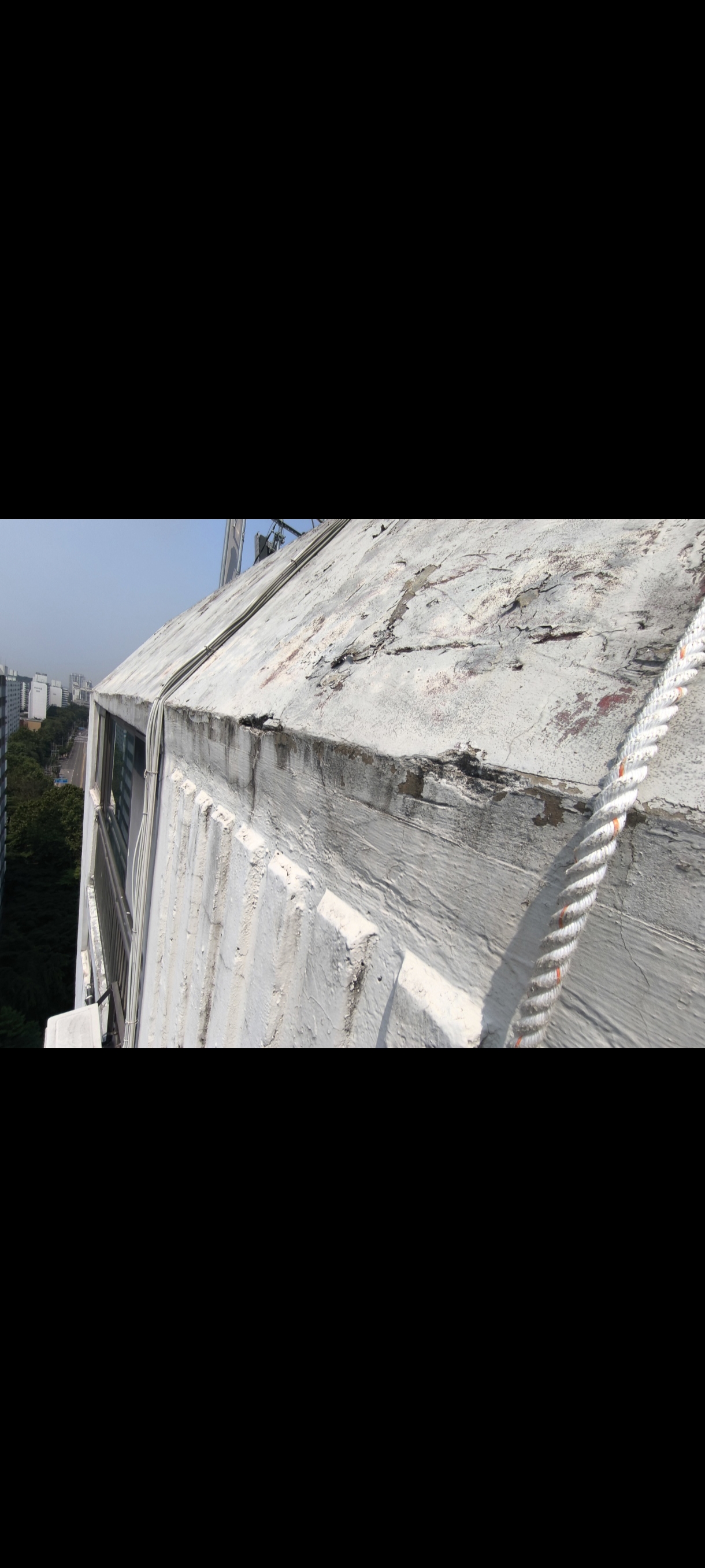 아래사진은 누수현장에 아파트는 아니나 이처럼 파라펫 하부에 크랙이 있는경우 탑층인 17층을 통과해서 16층 천장쪽으로 누수가 가능할까요?