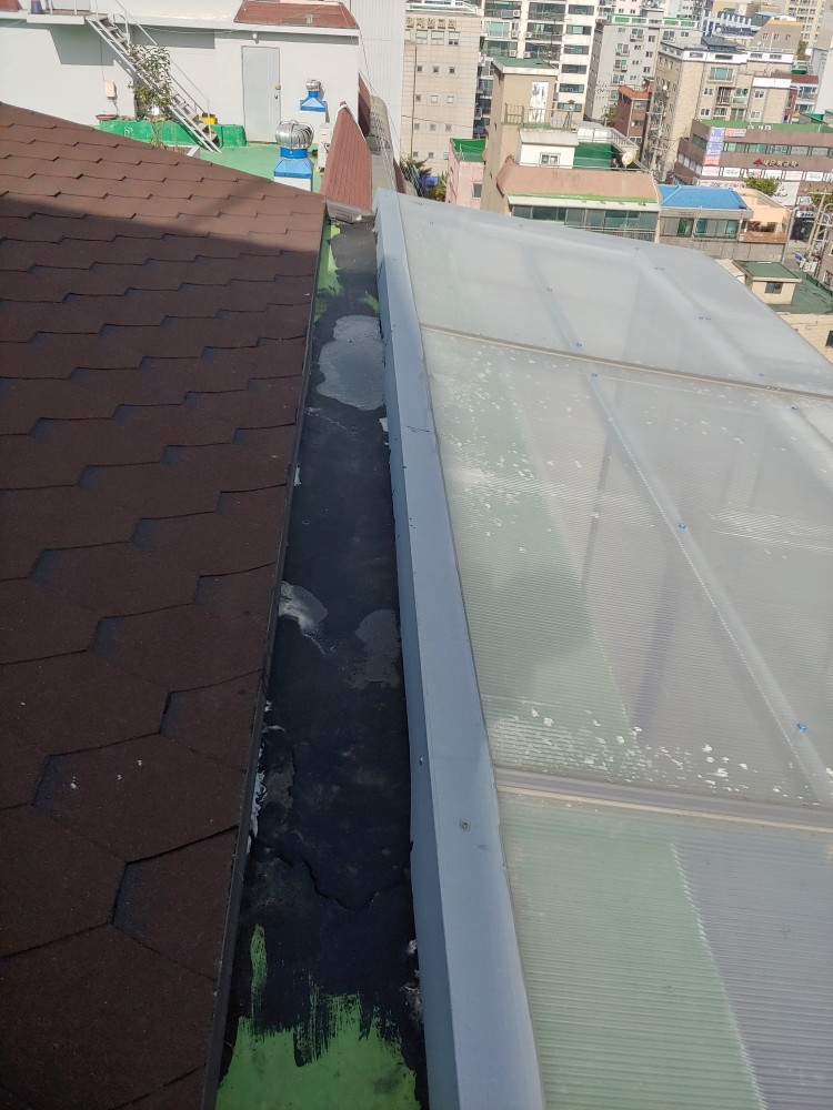 폴리카보네이트 조인트일 수도 있고, 슁글 지붕의 끝 부분에서의 누수일 수도 있거든요.