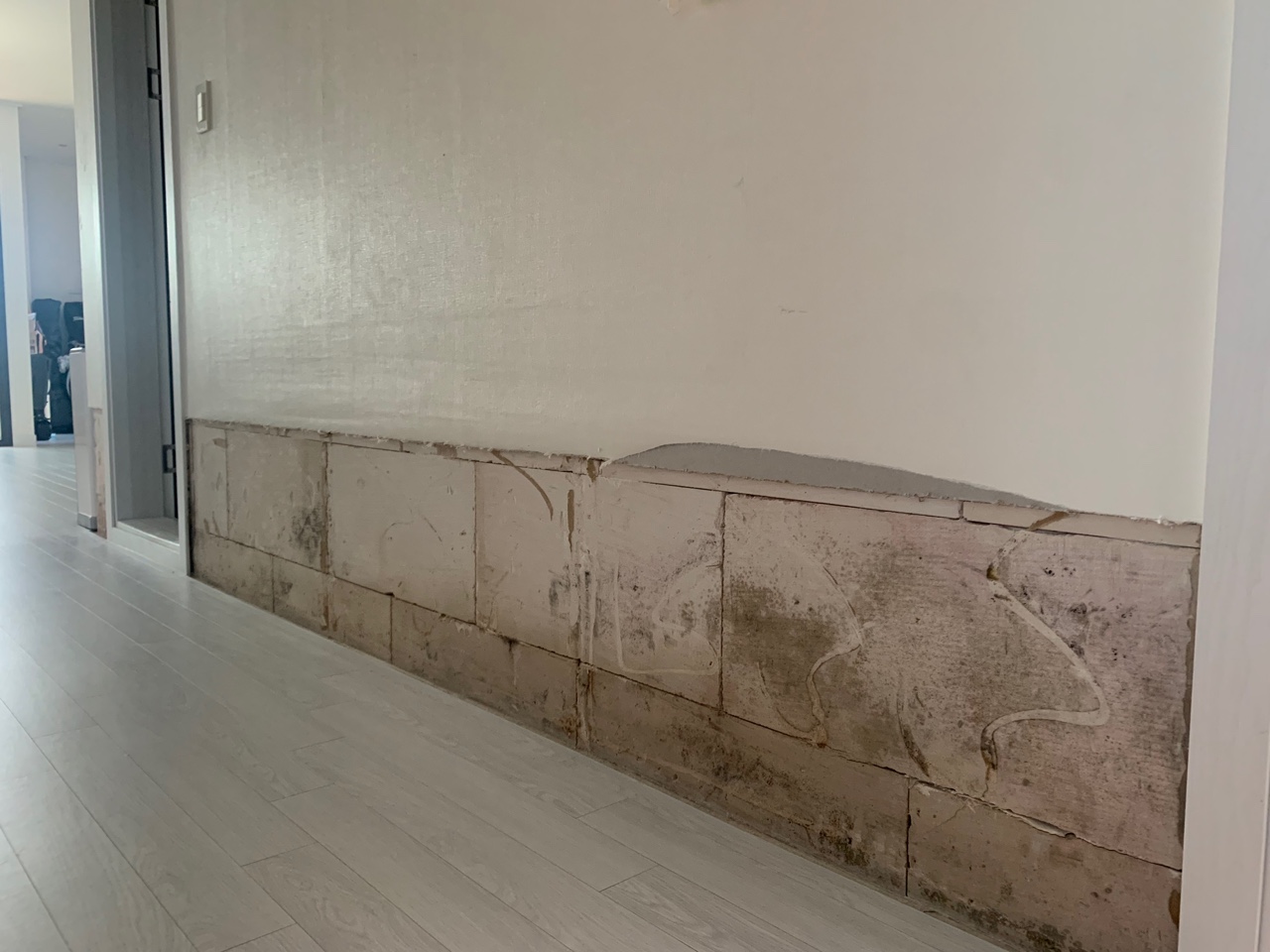 업체에서는 벽돌을 말리고 다시 방수석고보드를 데고 마감하겠다고 하시는데