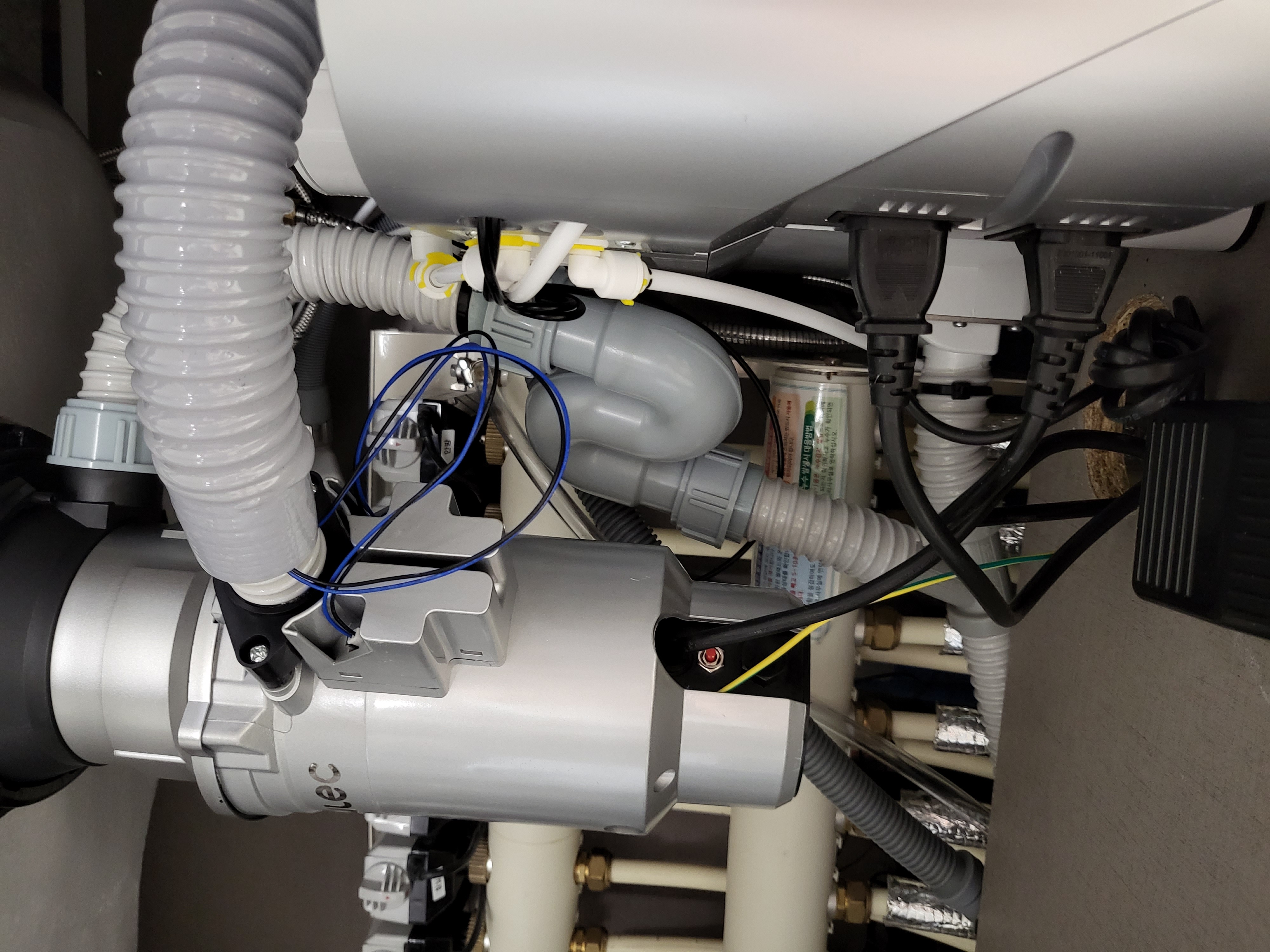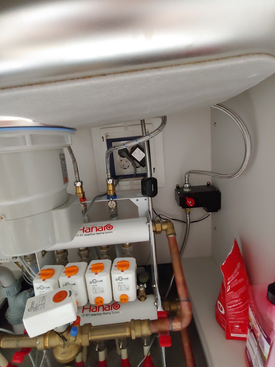 첫번째는 원으로 표시한 밸브를 열어서.. 화살표로 표시된 왼쪽 배관 속에 이물질이 있지는 봐서.. 있다면 청소를 해주어야 하고.. 해당 배관의 길이를 조금 줄여서 중간이 이물질이 쌓이지 않도록 경사를 주는 작업이 필요할 것 같습니다.