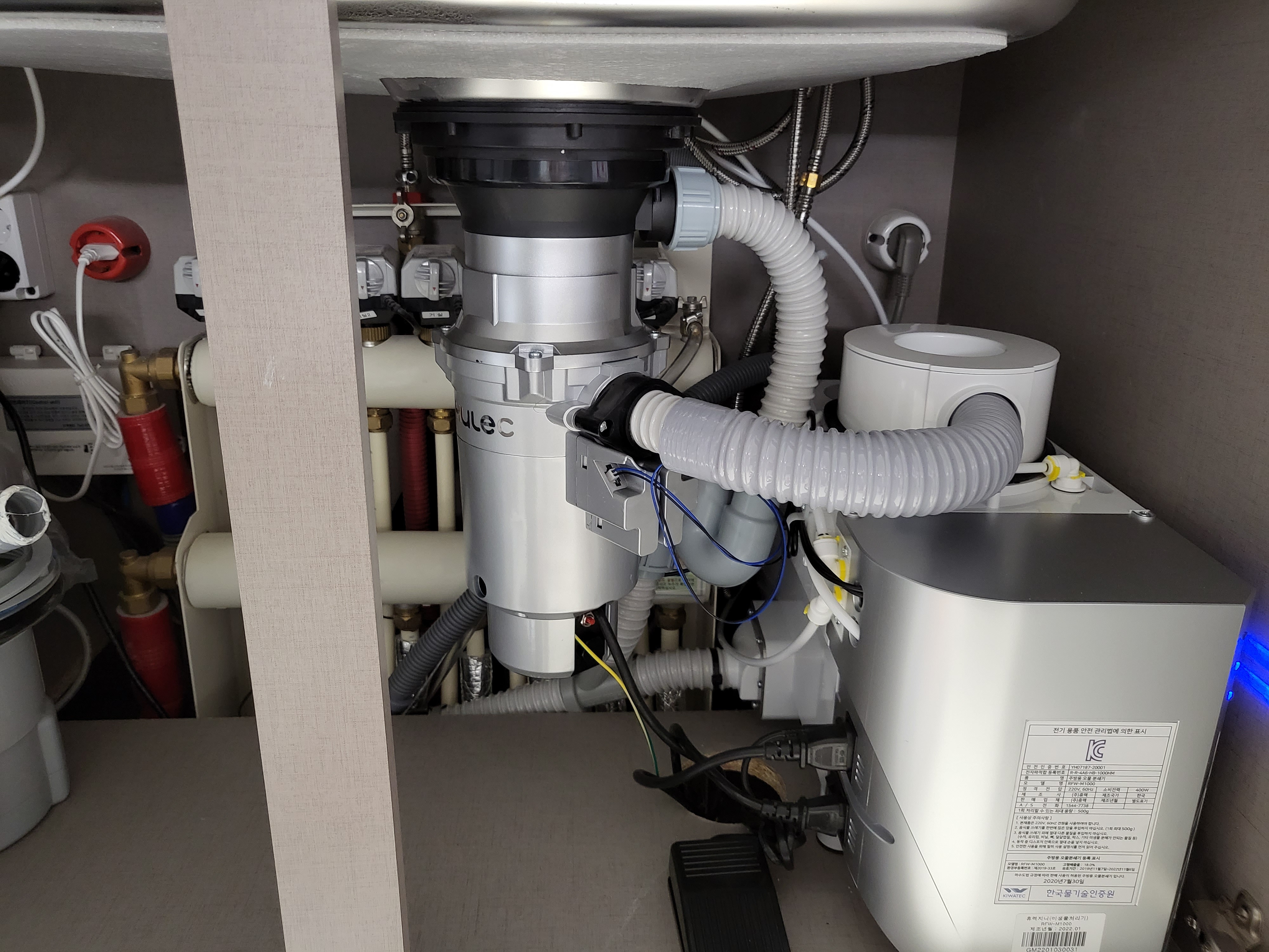 입주 후 1년정도 지나고 발생하여 하자 수리를 1차례 받았고 한동안 괜찮다가 최근 증상이 다시 시작되었습니다. 처음에는 원인을 찾지 못해 관리사무소직원, 하자센터직원, 음식물탈수기 회사직원까지 동원되었으며 (음식물탈수기는 전 세대 다 설치된 상태)