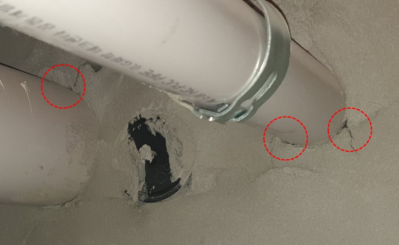 2. 간접음 : 이 틈새가 처리가 되더라도 배관 자체를 타고 오는 소음이 있을 수 있습니다. 그럴 경우, 아래층 배관에 흡음재로 시공이 된 것 처럼.. 해당층 배관도 같은 작업이 되어야 합니다.