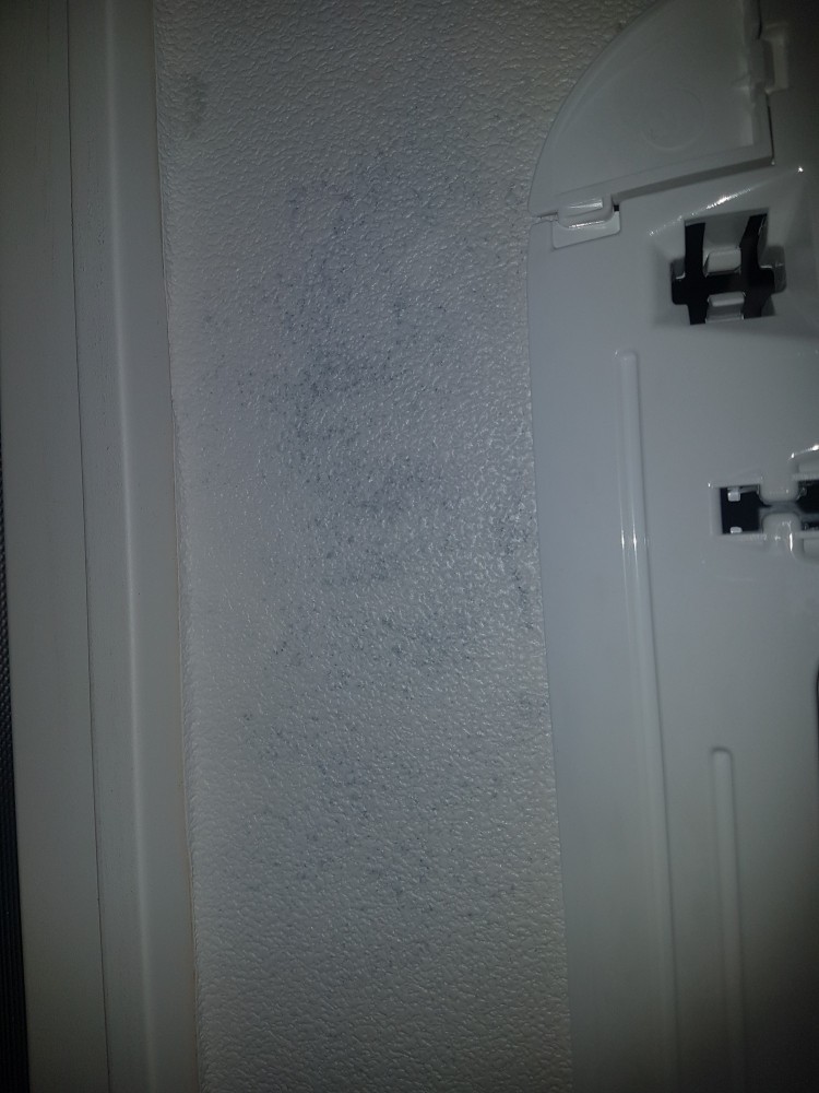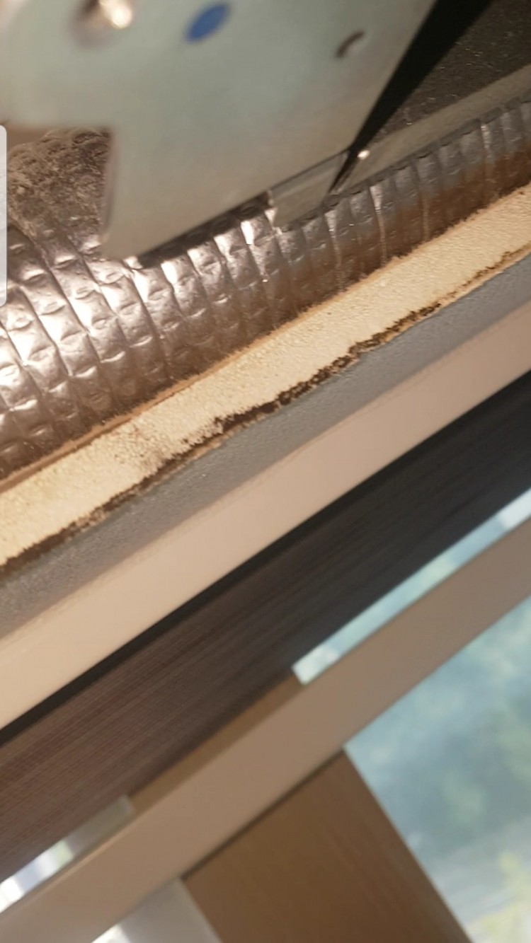 석고보드판에 곰팡이가 발생하여 아래에서 봤을때