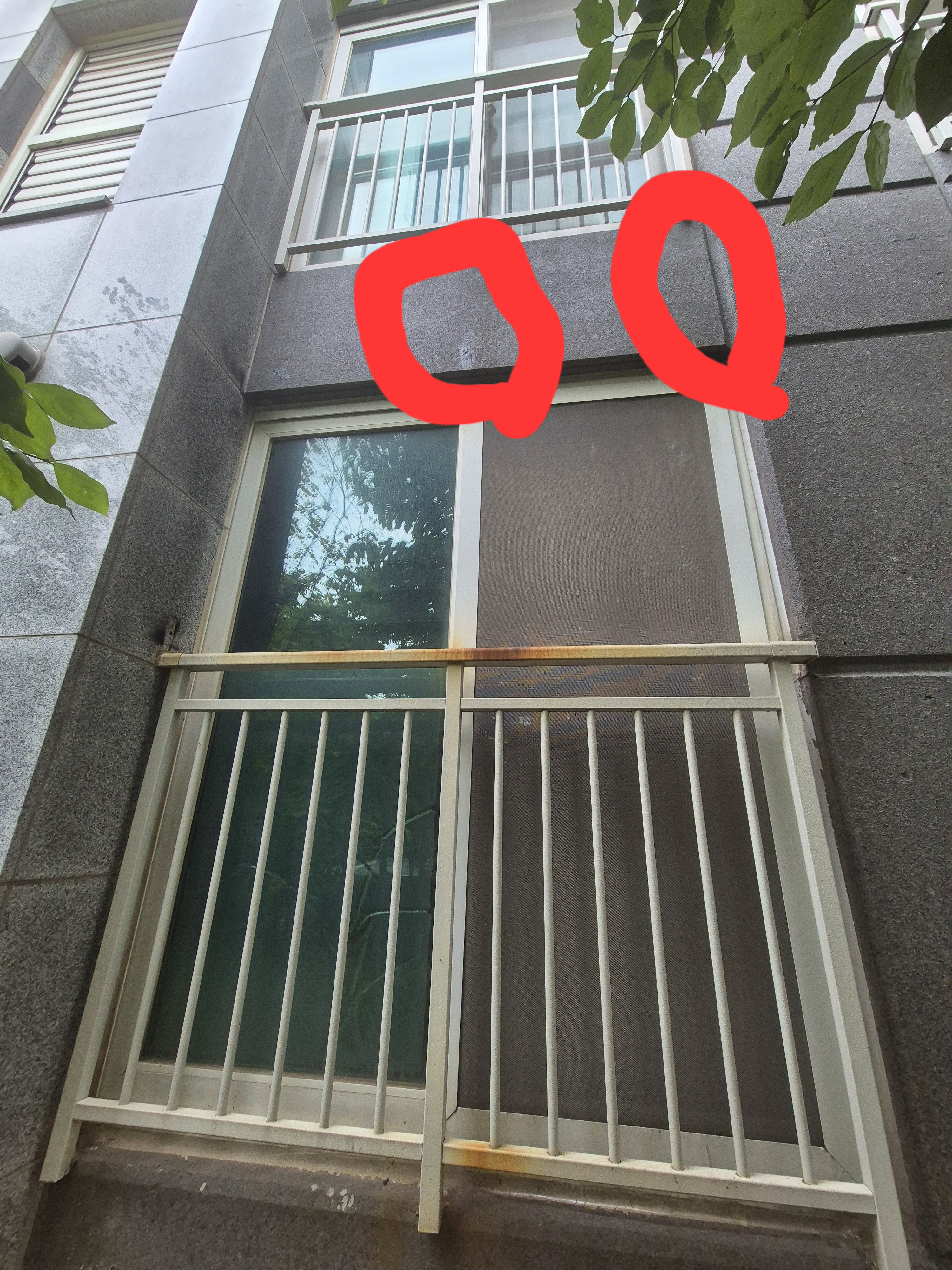 2. 윗집 난간에는 녹물이 없는데, 해당 집의 난간에는 녹물이 많이 떨어진 점