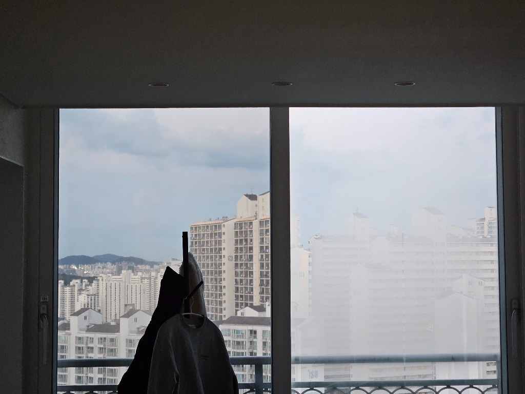 추가적인 환경상황은 창의 오른쪽은 세대가 없고 외벽이 위치하고 왼쪽으로는 베란다가 위치합니다