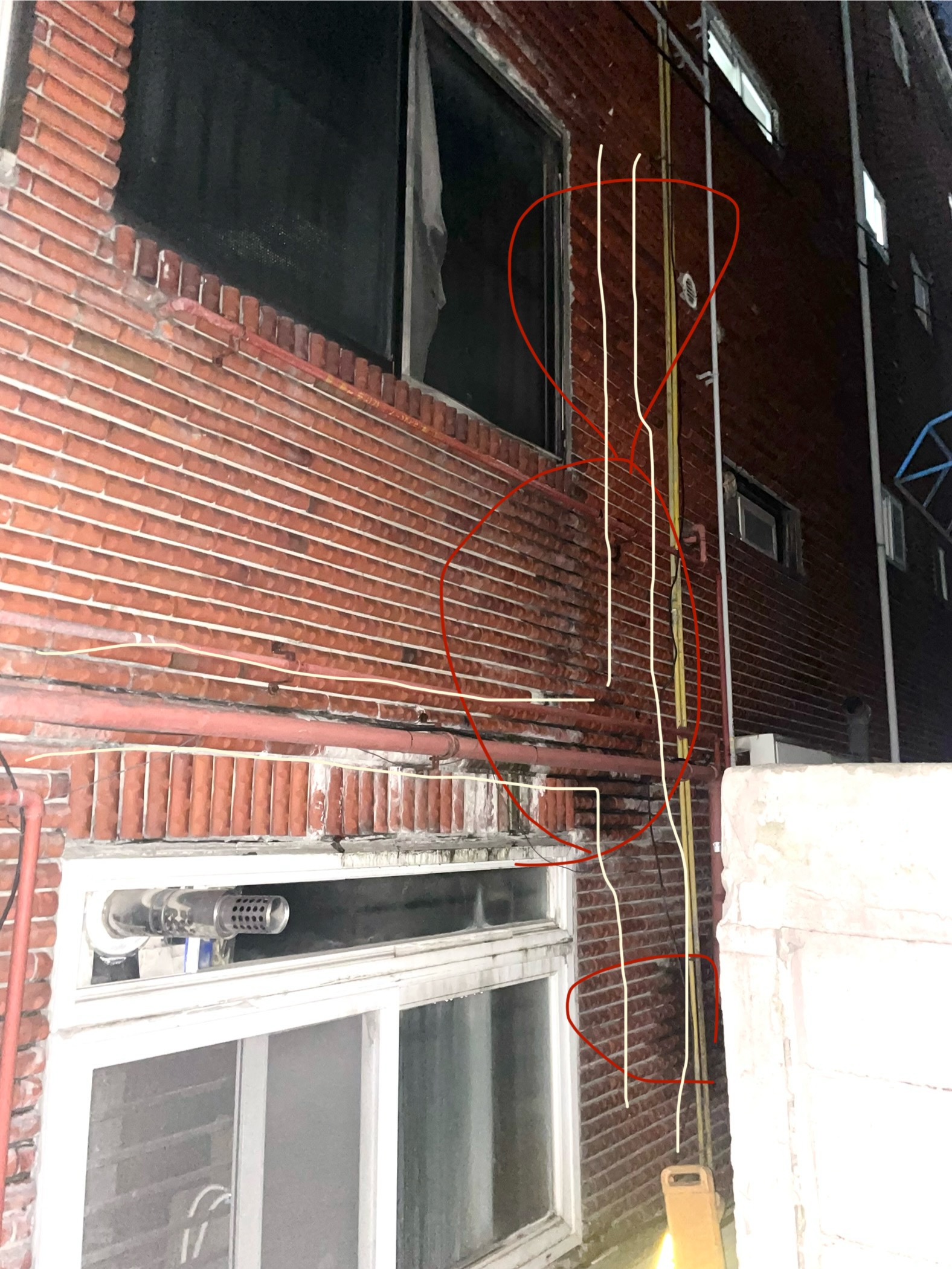 첨부 사진의 하얀색 창문이 저희집이고 창문 오른쪽 벽이 많이 젖어있는데 공용하수관 입상관이 매립되어있고 입상관에 문제가 있을까 하여 하수관 고압세척 및 내시경 탐지를 하였는데 이상이 없었습니다. 101호,102호,202호 누수탐지를 하였지만 누수는 없는것으로 확인 되었습니다. 이게 결로일 수 있는지, 어디서 누수가 있는지 아직도 원인을 찾지 못 하여 이렇게 글 남깁니다.