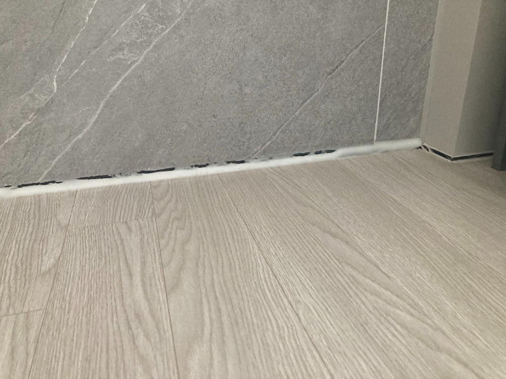 사진3 – 주방과 면한 거실측면 걸레받이 들뜸. 바닥 실리콘 틈새