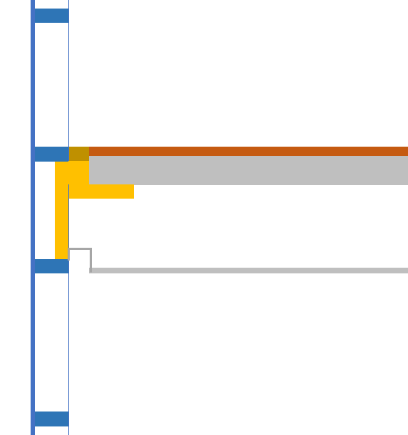 아래 그림처럼 층간 공간에 암면을 채우는 식이어야 합니다. (노란색이 암면)