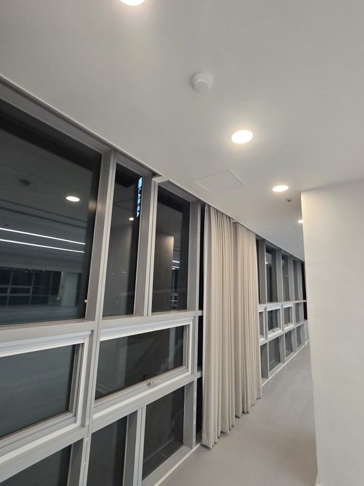 업체에서는 창가쪽으로 25cm 정도 되는 벽체를 추가로 세우라는데, 비용도 비용이지만 무엇보다 그러면 저희가 탁트인 쾌적한 뷰 때문에 지상에 자리를 잡았는데 그 이유가 없어지고, 공간도 너무 답답해지며, 기존에 창가쪽에 이중으로 단 비싼 방염커튼들을 모두 철거해야해서 수용하기가 어렵습니다.