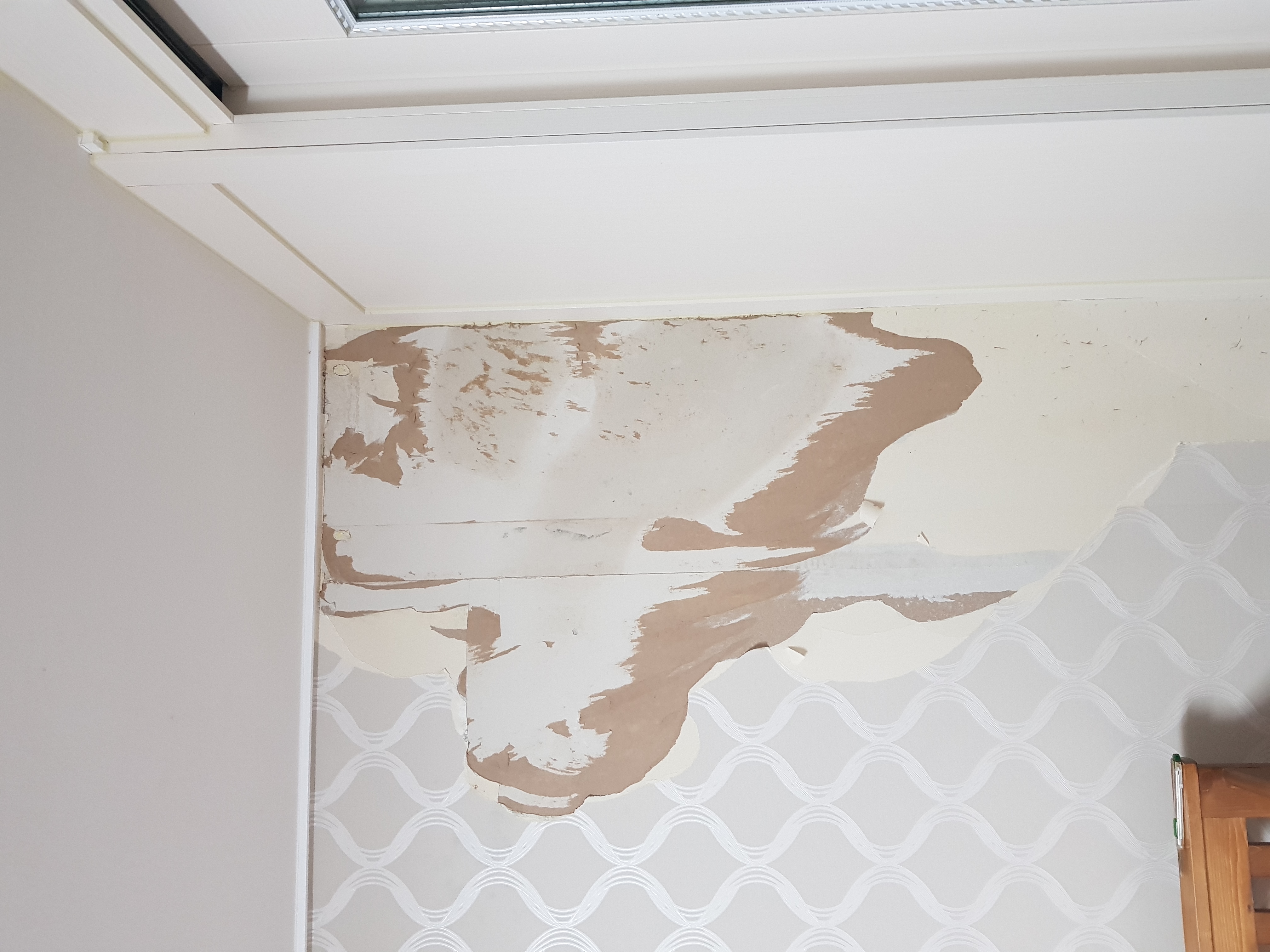 벽지 안쪽은 어제 뜯어봤는데 곰팡이 와 석고보드의 석고까지 젖어있습니다 (이정도면 보드 맞은편도 곰팡이 엉망일까요?)