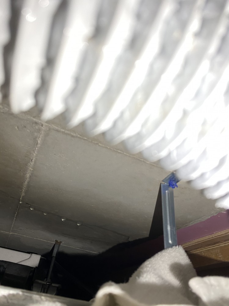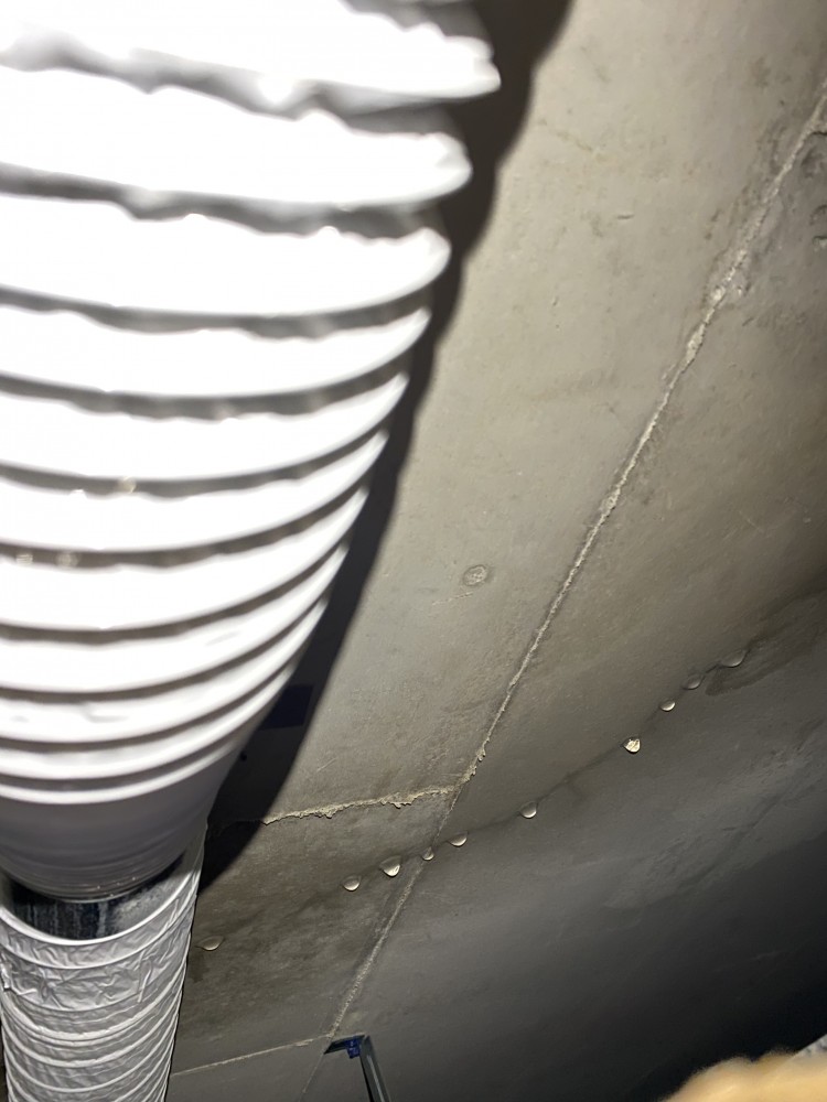 방문하신 분들 말씀은 배관문제라면 이렇게 물이 맺히며 떨어지는것이 아니라 많은 양의 물이 떨어져야 하는데 그렇지도 않고 외부 크랙은 크게 육안상 확인은 되지 않고 있다 합니다.(외부 크랙 확인은 1층에서 망원경으로 보셨다고 해요)