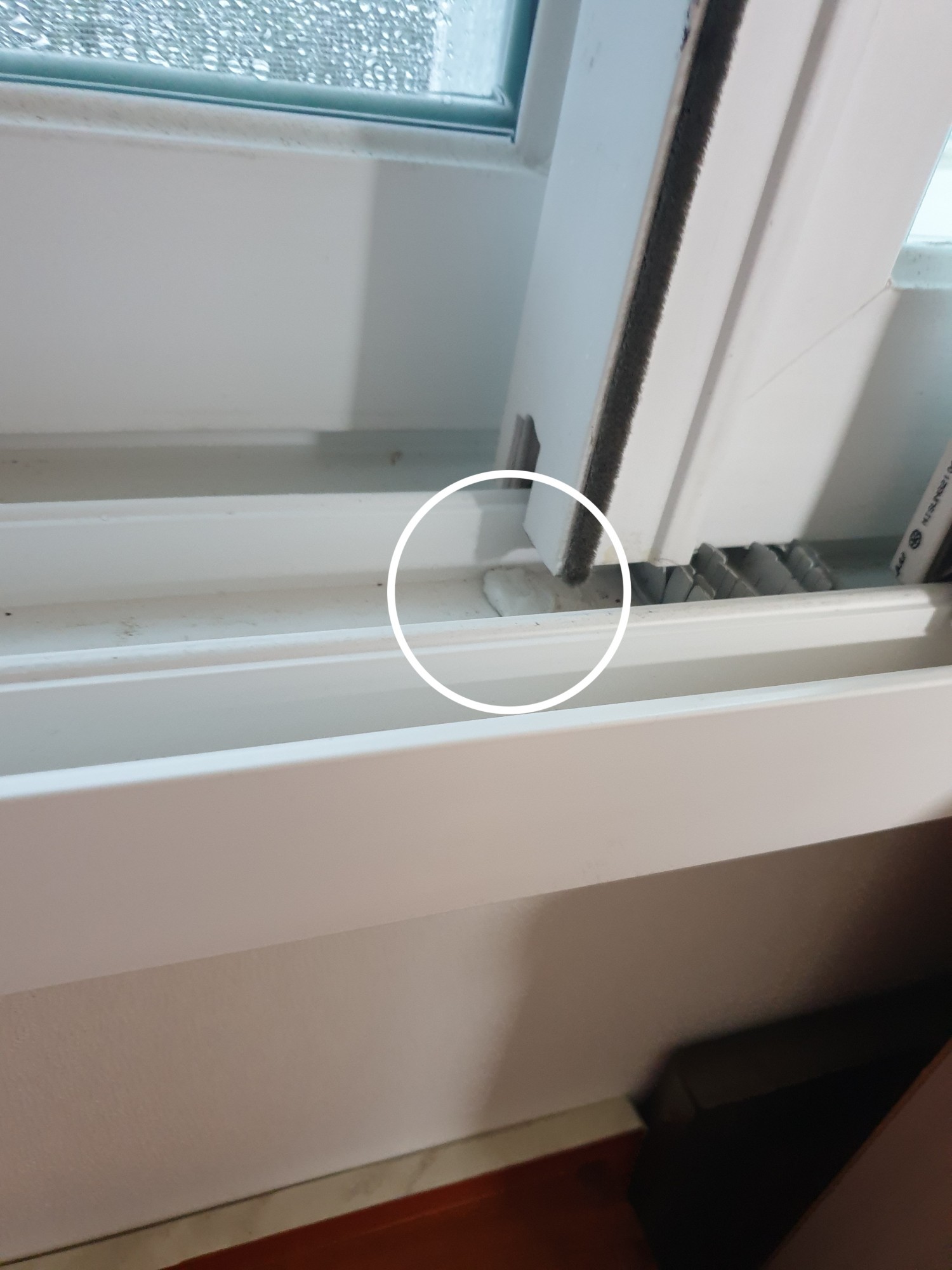 추가문의 드립니다 앞쪽샷시 위쪽 가운데부분에서물이 떨어지는데 이것도 코킹불량인건지요?
