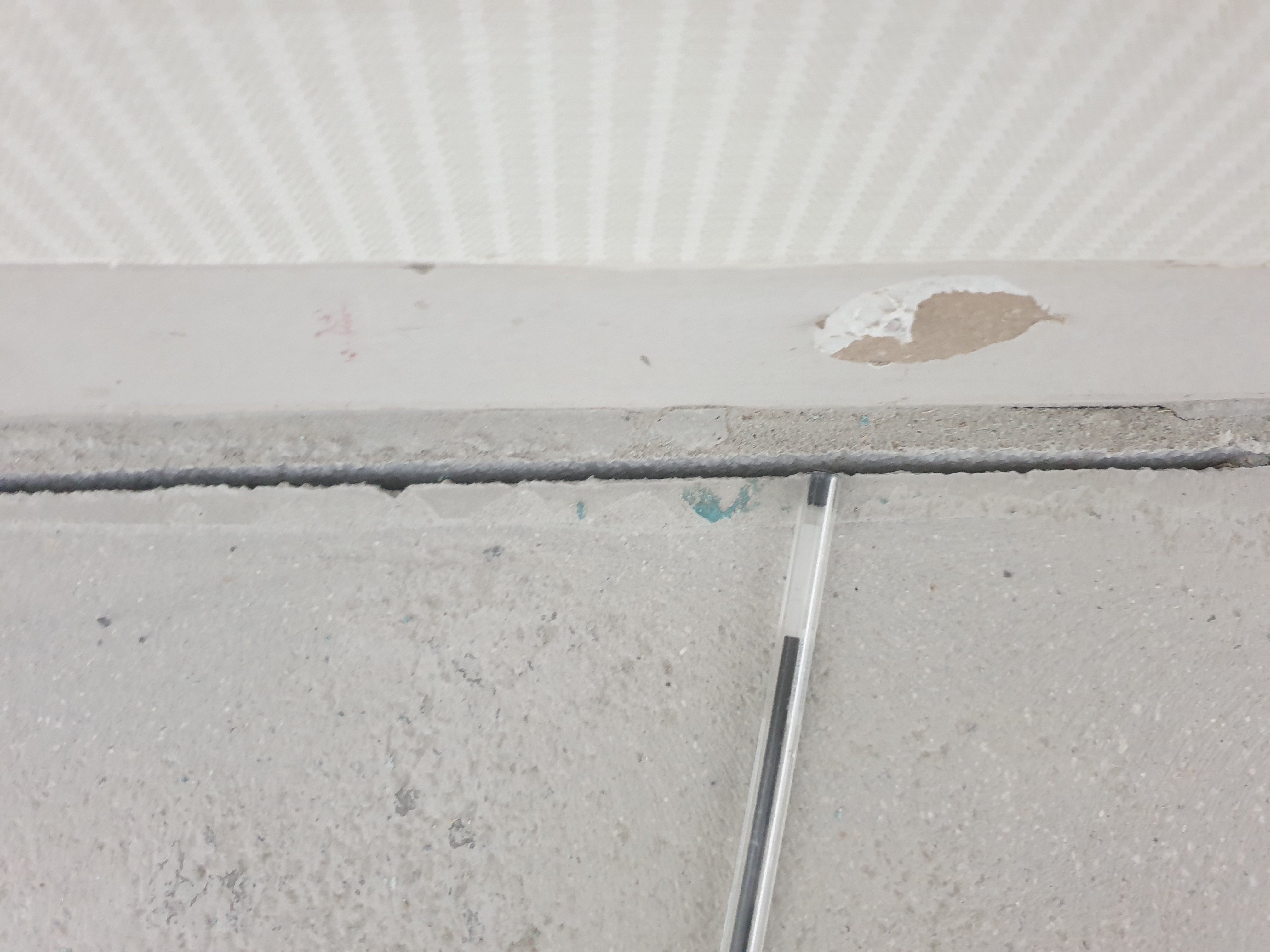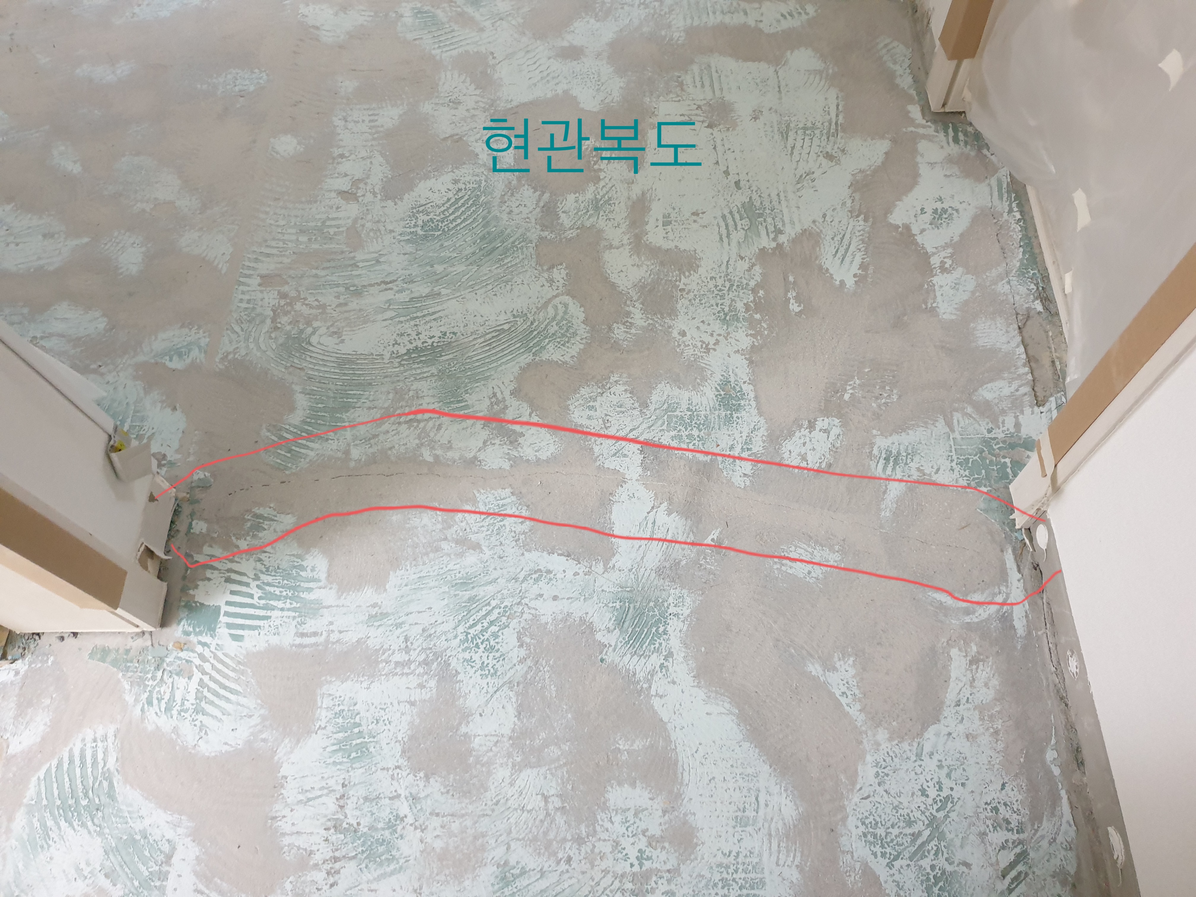 건설사에서 v커팅 후 정석대로 마감했다고 했는데 재가 주말에 가서 찍은 균열이 그대로 보이는 사진들을 보여주니 보일러관때문에 v커팅이 위험하다고 에폭시퍼티로 사이 채워넣고 수평을 낮추기 위해 한번 갈고 다시 애폭시퍼티로 필요한부분 더 마감한 후 진행한답니다.