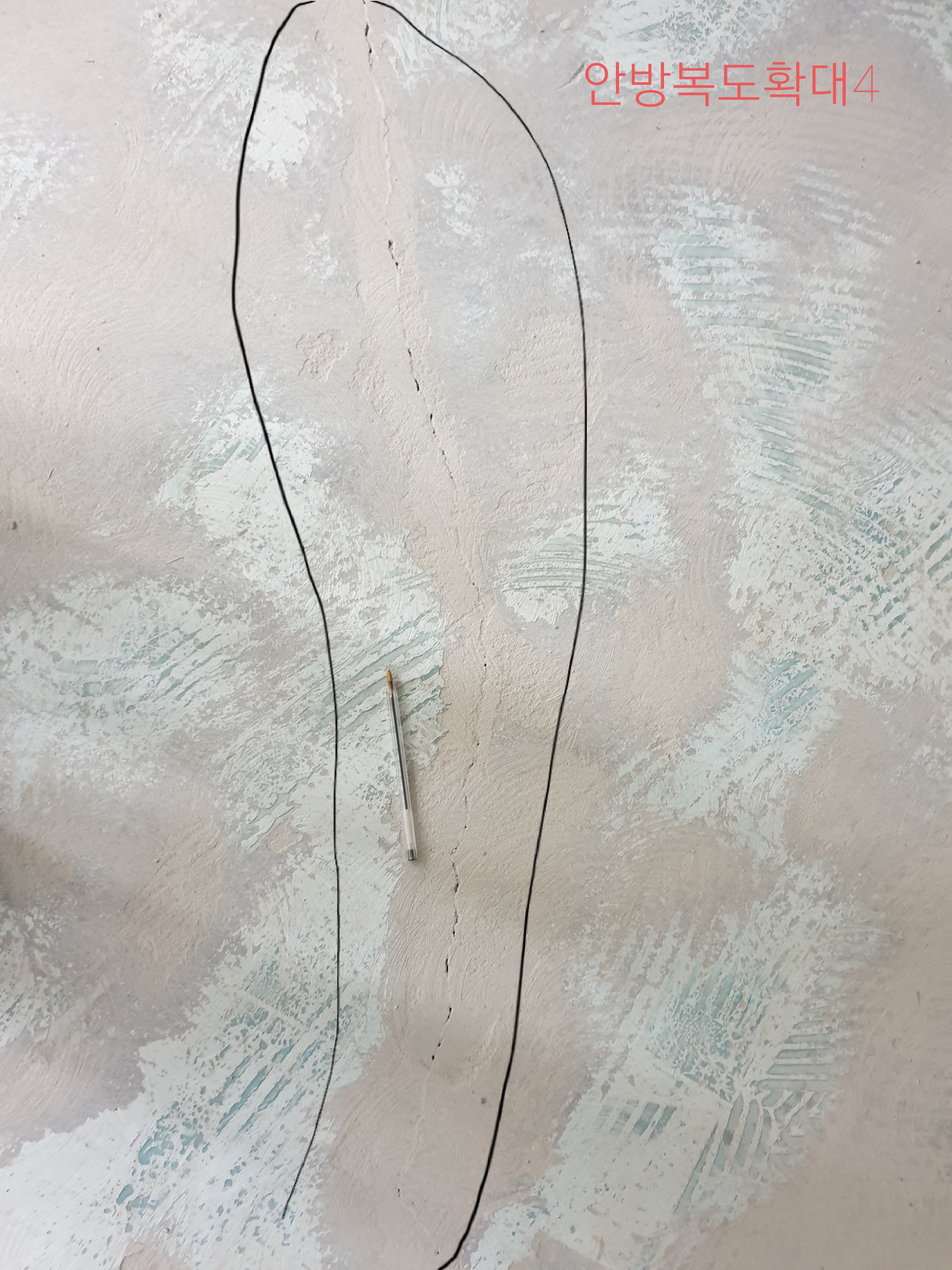 균열이 많지는 않고 안방앞 작운복도와 마루연결부위 파도치는 부분에 균열이 모여있도 현관앞 복도가 가장 차이가 큰데 (13미리정도) 여기에도 균열이 있습니다.