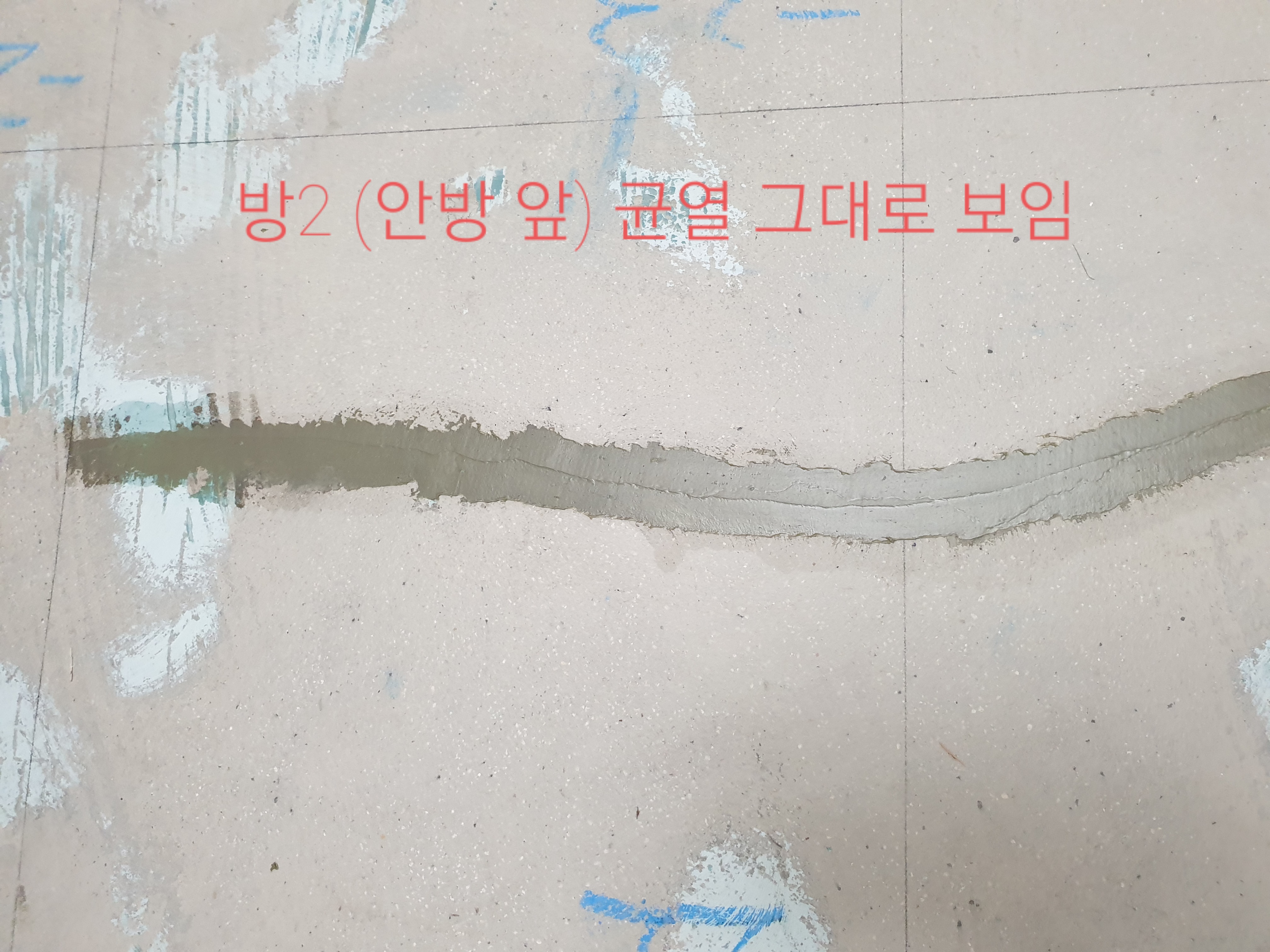 2. 마루를 뜯어서 균열이 있는지의 여부를 보시고, 균열+지속적 변형으로 그 하부의 문제임을 확인할 수 있습니다.