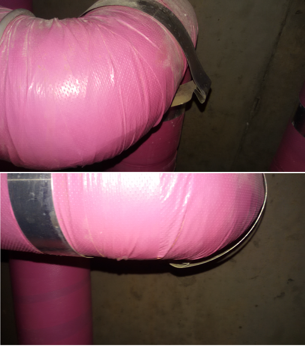 가장 오른쪽에 위치한 배관에서 두드러지게 큰 소리가 나고 있습니다 (분홍색-난방배관)