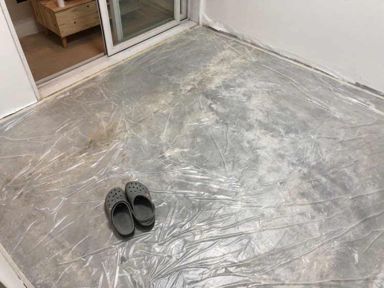 혹시 몰라 바닥에 습이 남아있을것 같아 비닐을 깔아두고 보일러를 틀어 잔여습이 남아있는지 테스트 해보았는데
