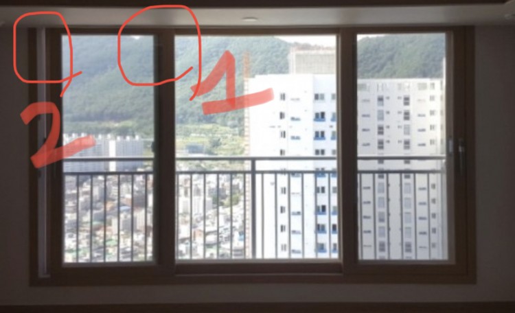 2. 창틀과 유리틀이 서로 수평 수직이 잘 맞아 있는지를 봐주세요.