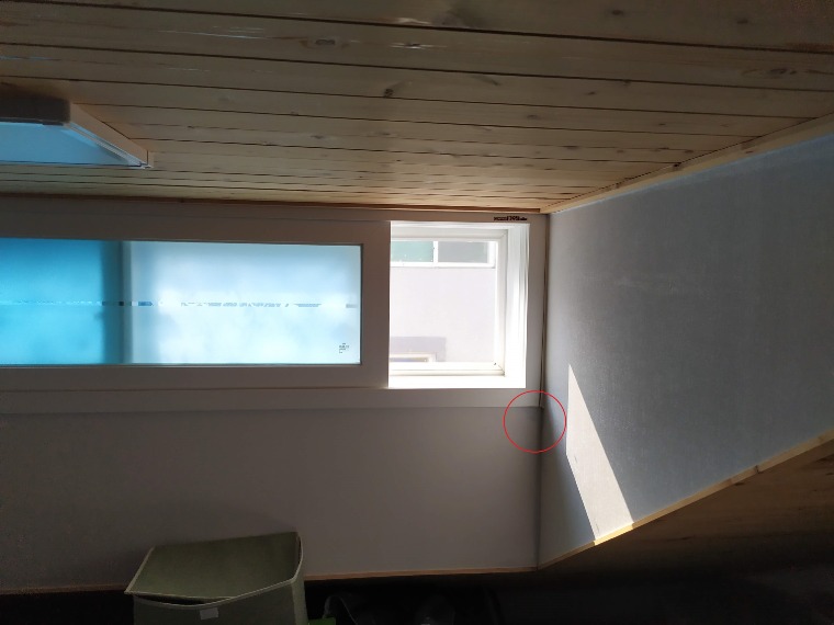 그런데 2년정도 크게 문제가 없었다가 3년차에 들어서면서 갑자기 다락층 뻐꾸기 창 하단 코너에 누수가 발견되었습니다.