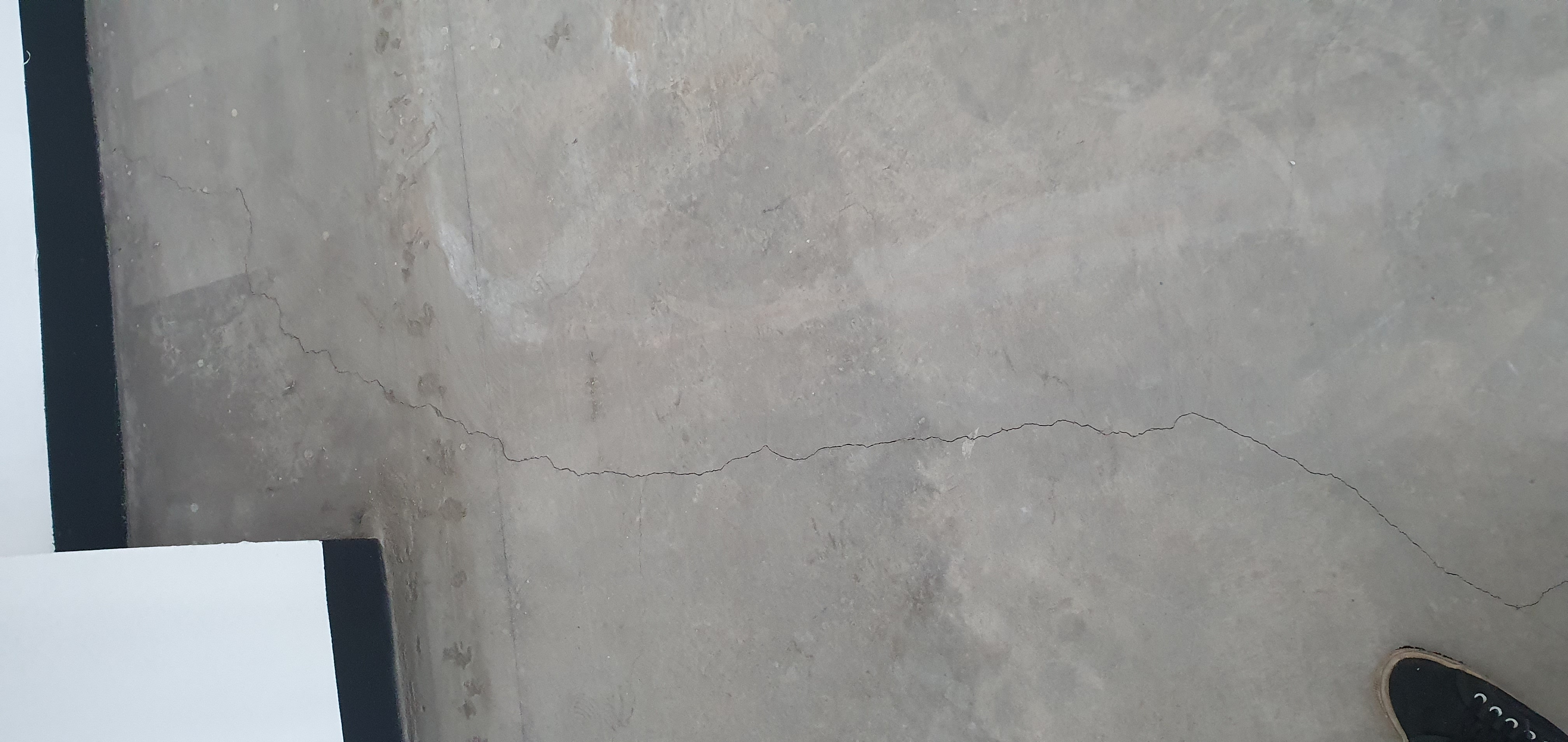 균열은.. 팬의 진동이 원인으로 보이지는 않습니다. 그리고 구조체가 아닌, 무근콘크리트의 균열이라서 구조적인 문제로 이어지지는 않을 것 입니다.