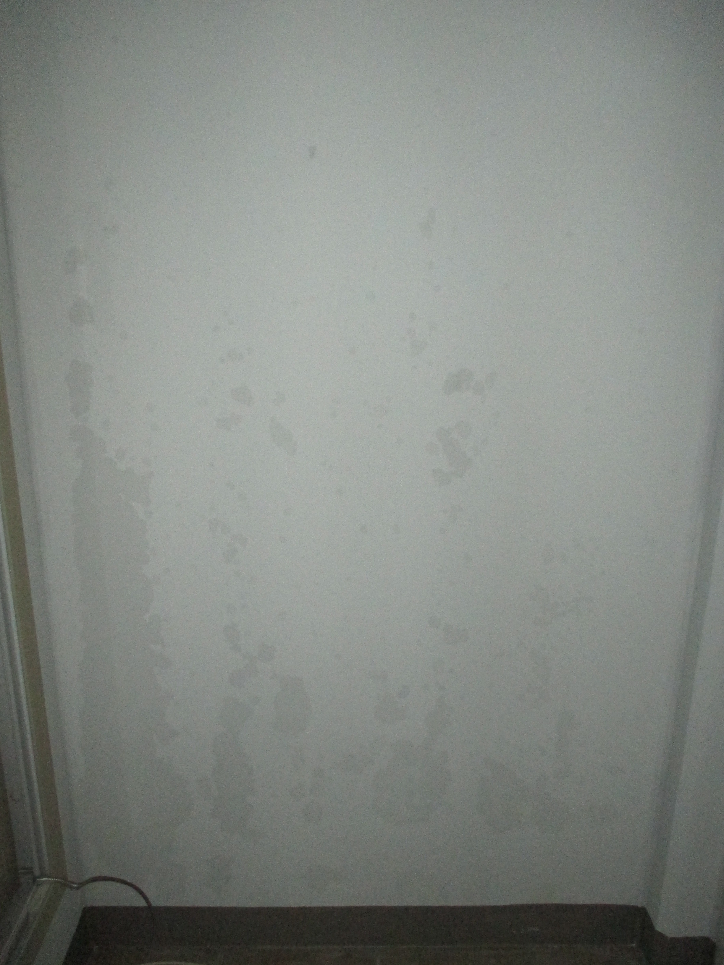앞베란다 벽면에 언제부터인다 다음과 같은 물자국(?)이 보입니다. 하루 종일 문을 열어 놓아도 없어지지를 않아서 문의를 드리게 되었습니다.