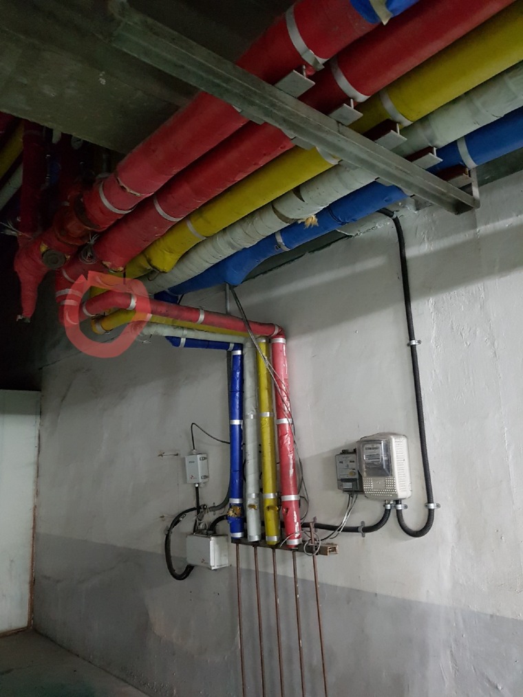 "아마도 압력을 올렸을 때.. 움직임이 커진 배관으로 인해 어디선가 조금 이격이 벌어진 틈에서 소리가 울리는 것 같습니다. 그 부분을 찾기가 어려우므로, 기계실에서 위로 올라가는 구간을 구조체와 링으로 연결을 해서 움직임이 줄도록 해야 할 것 같습니다"
