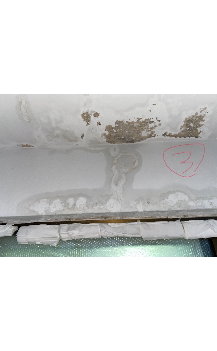 올려 주신 사진 중에서 모서리에 물이 고여 있는 모든 부분이 다 누수의 후보군인데요.