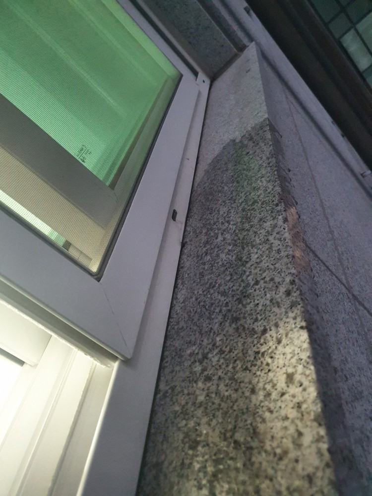 확인해보니 창틀 밖에 하단에 실리콘이 누락되어있었습니다.