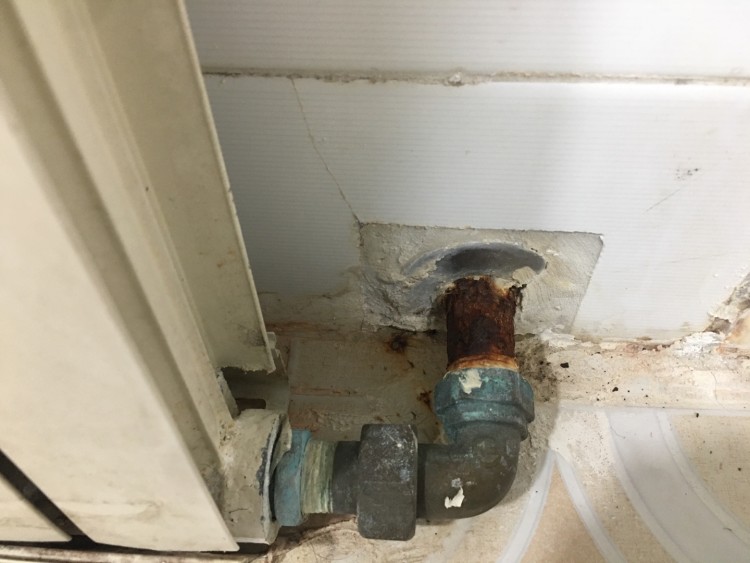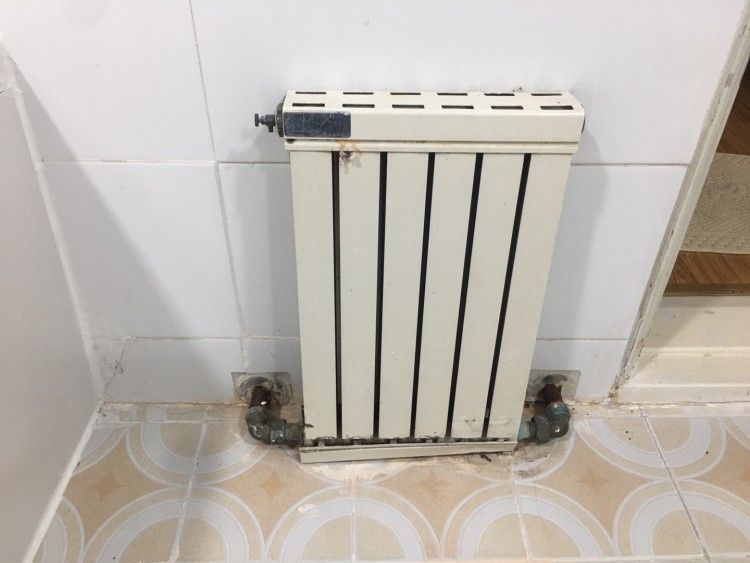 아파트 연식이 오래된 만큼 화장실 히터도 오래됐는데요, 특히 작은방과 연결되는 벽쪽에 붙은 히터 배관에 녹이 많이 슬었습니다. 히터배관은 작은방 난방에 중요한 역할을 합니다.