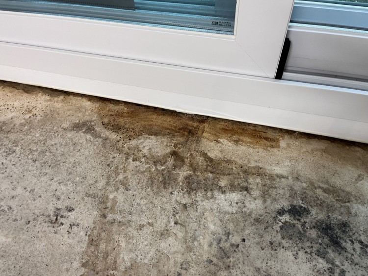 몰딩과 접한 바닥면 콘크리트가 젖은채로 마른적이 없으니 샷시 하부 레일에 물을 채워본 들 물이 젖어 들어오는지 확인할 길이 없다고 생각했기 때문인데요