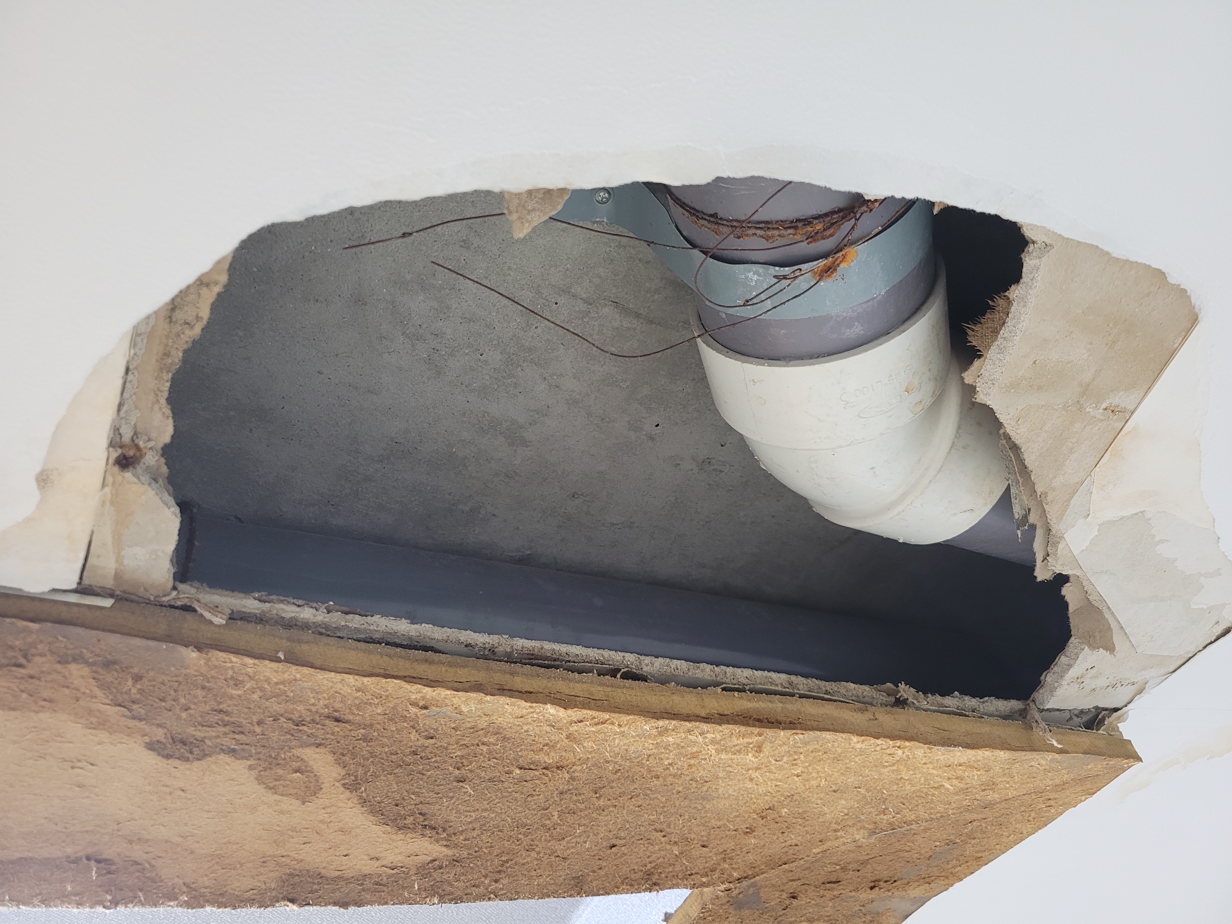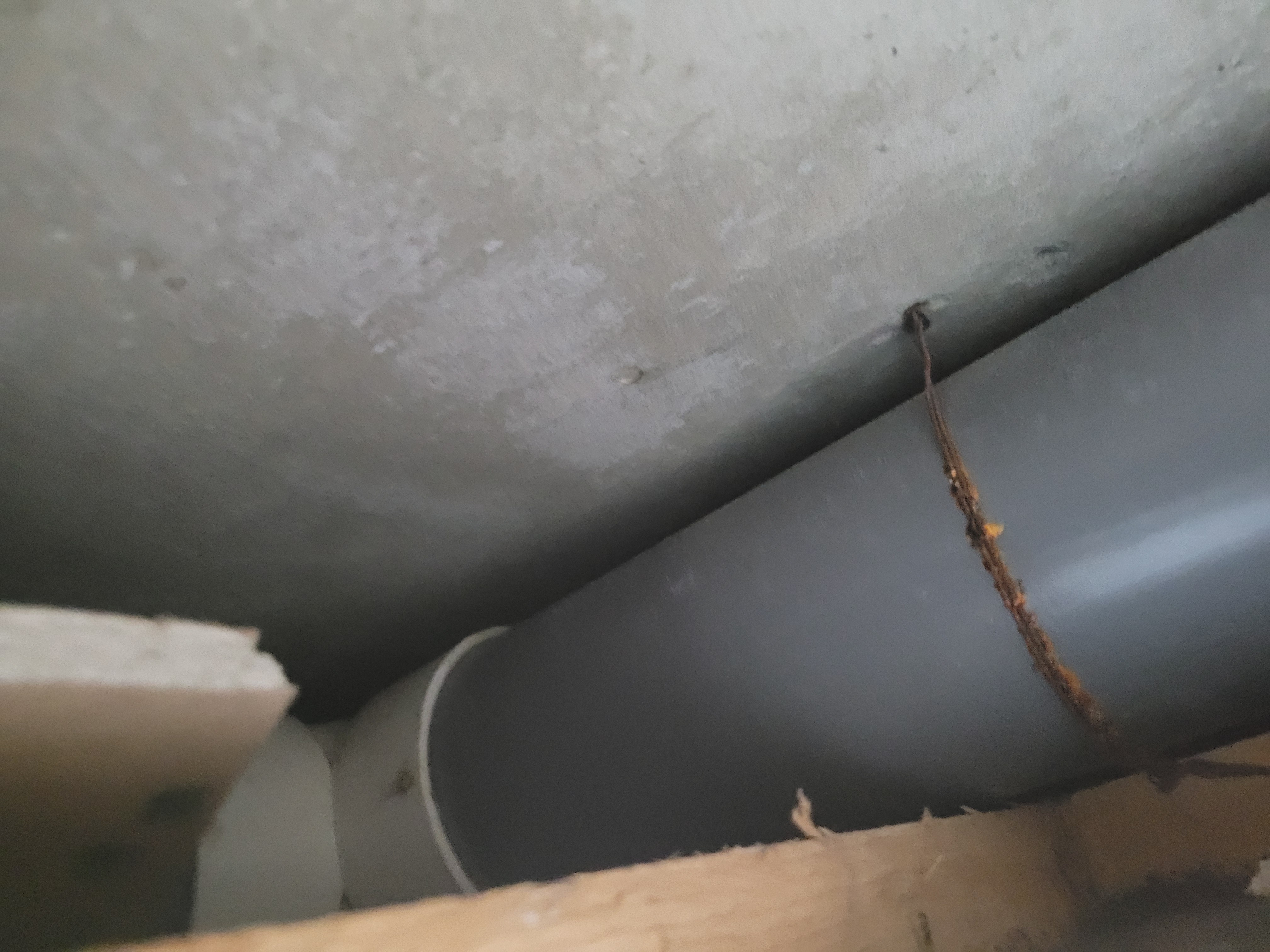 누수되어 불어터진 우물천장 윗부분 역시 배관이 석고보드 바로 위에 이런 식으로 얹혀있었습니다