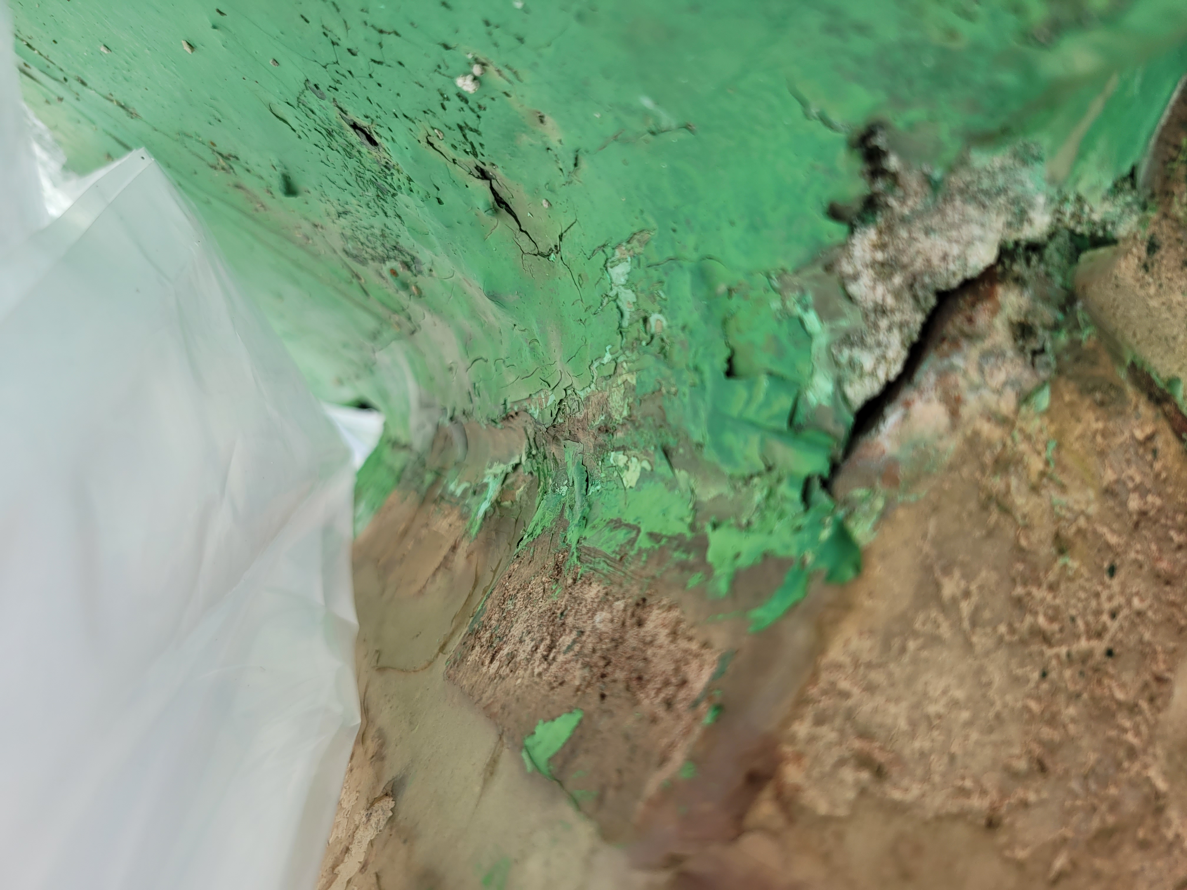 천장 부분의 벽지를 뜯어보니 곰팡이가 상당히 있었습니다.