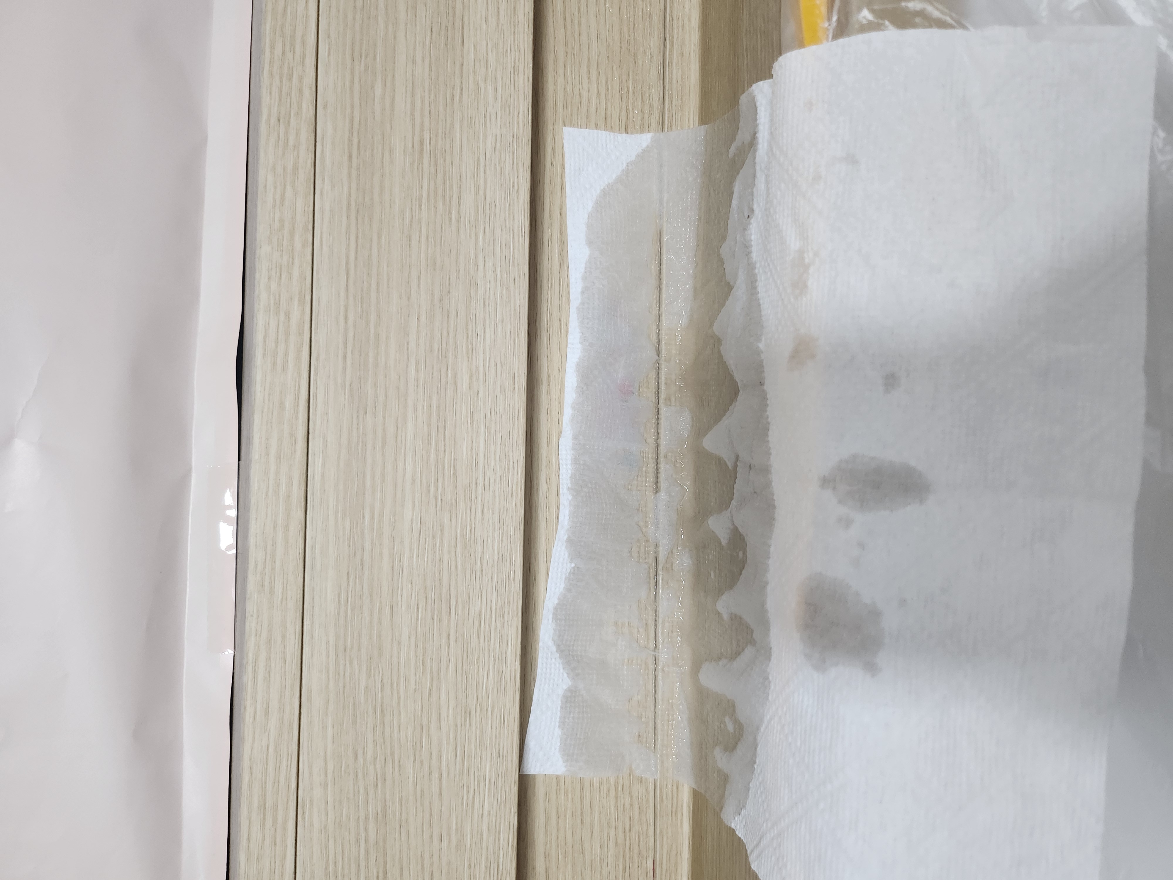 양쪽 끝부분도 물기 보이고 전체적으로 물이 스며나옵니다.