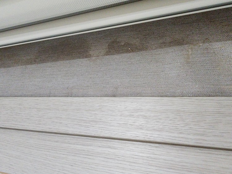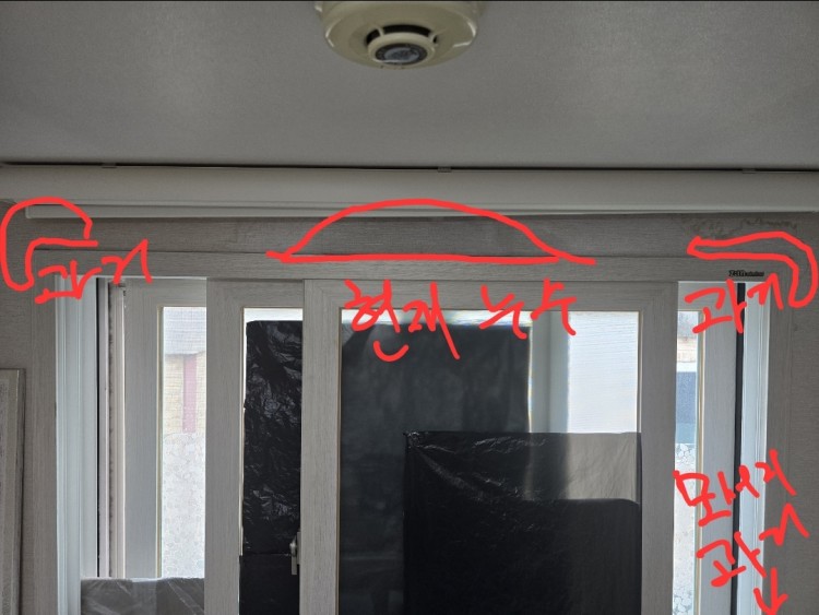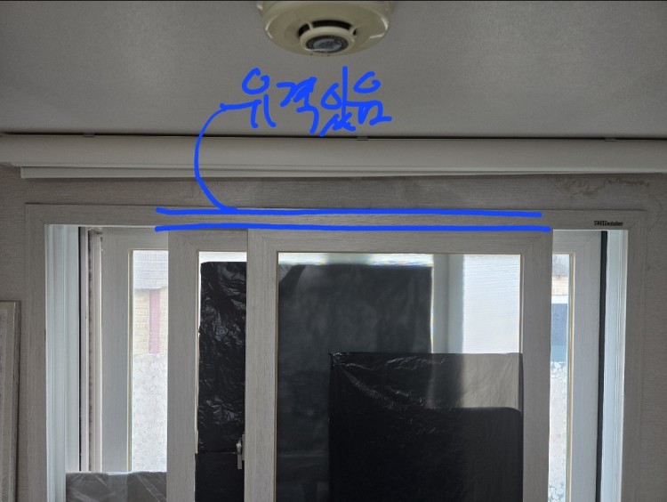장마시즌이 끝나 추가로 확인을 못했었는데 올 해 장마가 시작되면서 창문 샤시 중앙 위쪽 벽지가 젖기 시작하여