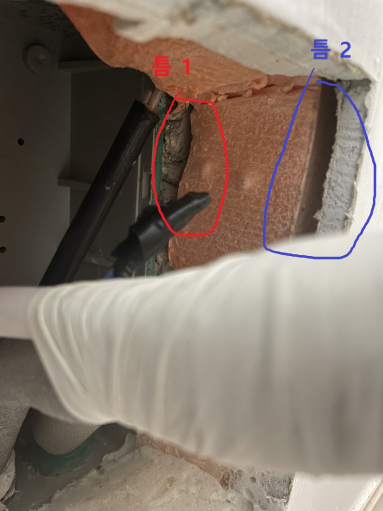 내부 사진의 틈1, 틈2 로 표시된 부분을 우레탄폼으로 막아볼까 생각중입니다.