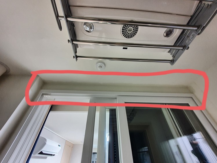 안방 발코니이며, 안쪽 창문 위쪽입니다. 외벽 창문이 아닙니다.