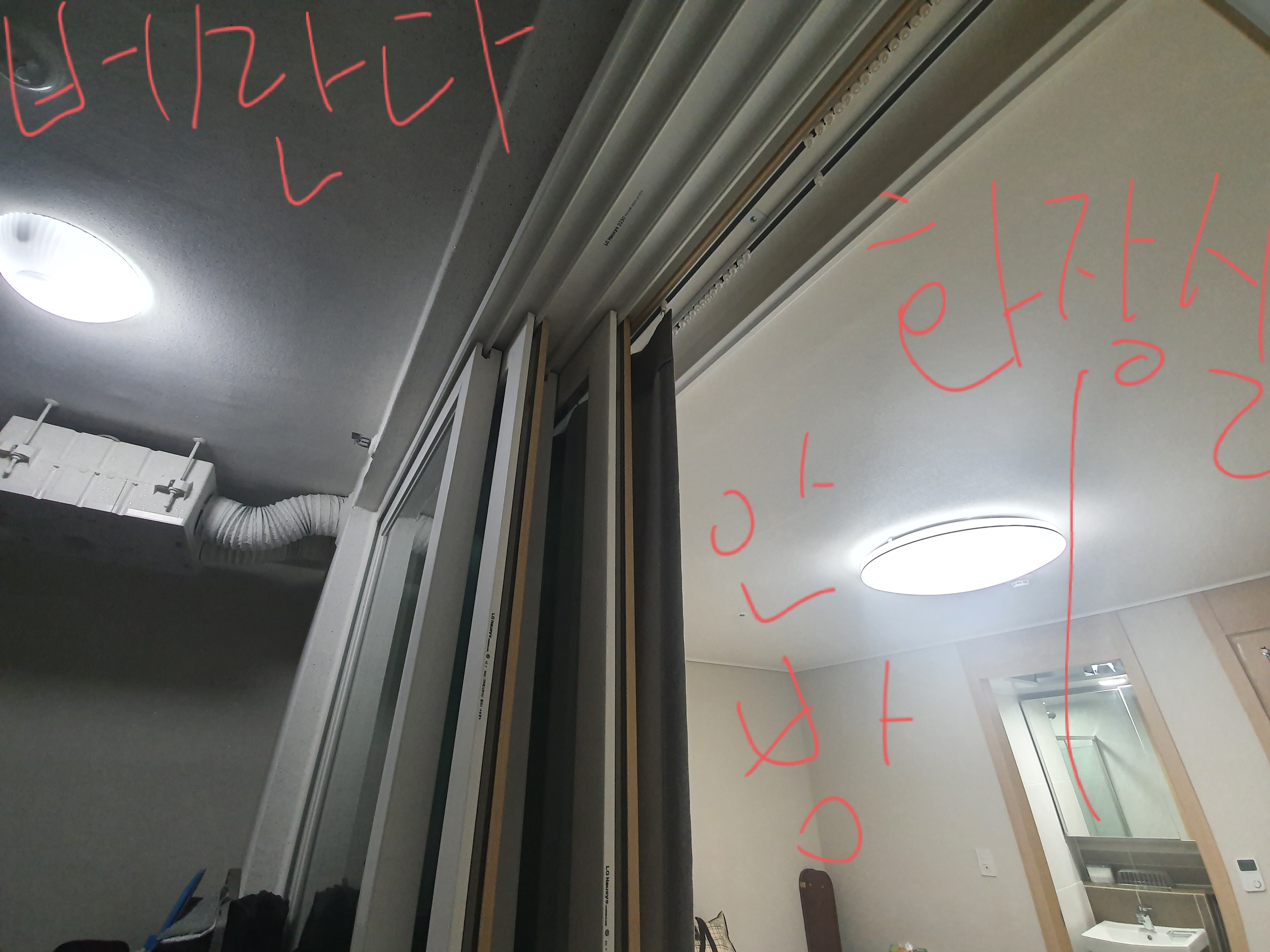 안방, 건너방의 천장구멍(스핑쿨러, 소화기,전등 등의 구멍)