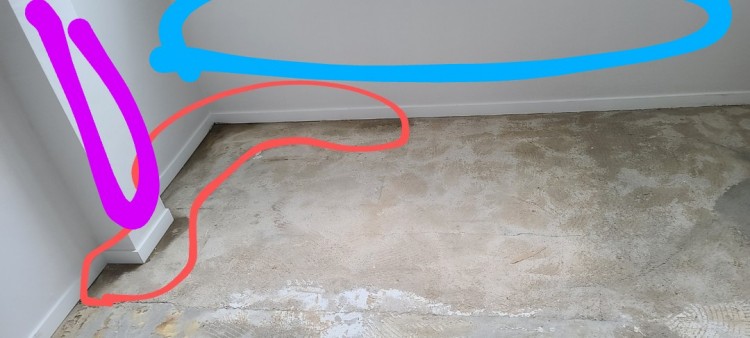 내일이 샷시교체날이라 어제저녁에 장판을 들어보니 저 빨간부위 안쪽으로 물이 고여있었습니다.
