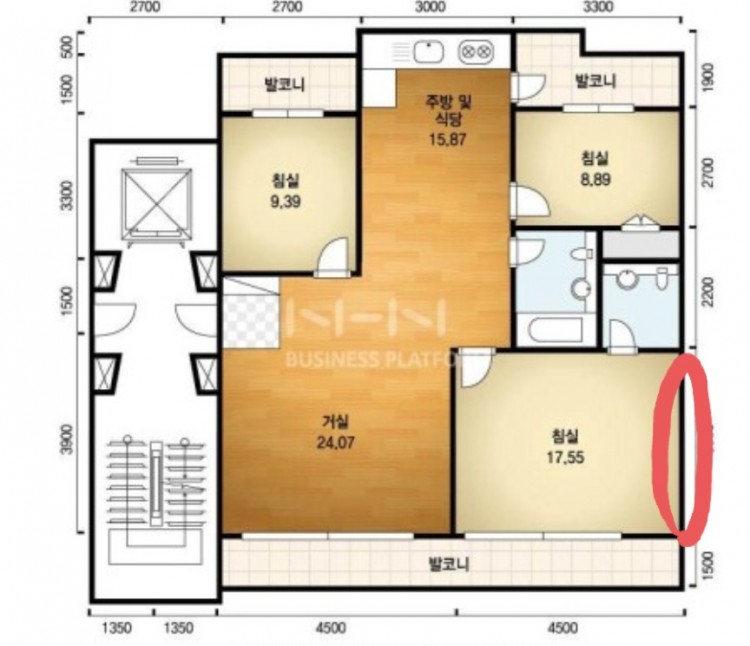 문제 발생 위치는 건물 외벽쪽에 벽면입니다.