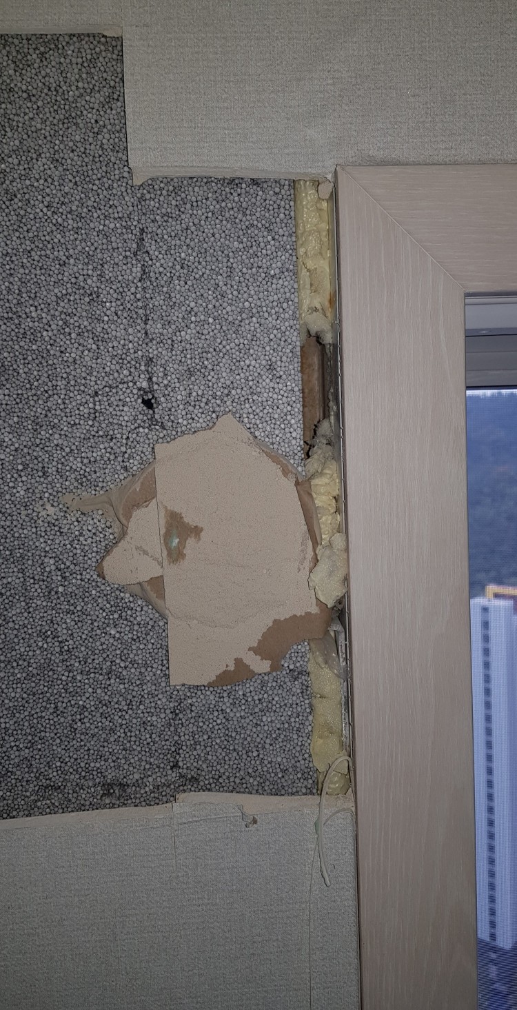 그런데 오늘 창틀 바로 옆쪽 석고보드를 제거후,