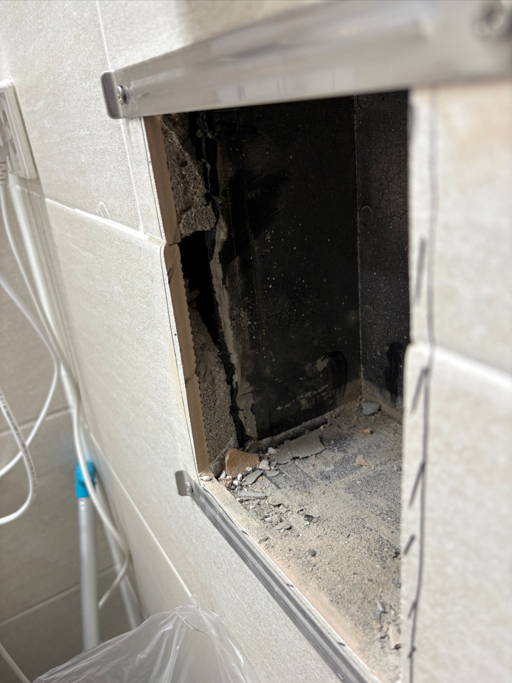 휴지 걸이를 뜯어보니 사진처럼 구멍이 있었고 여긴 그냥 우레탄폼을 쏴서 막아버렸습니다.